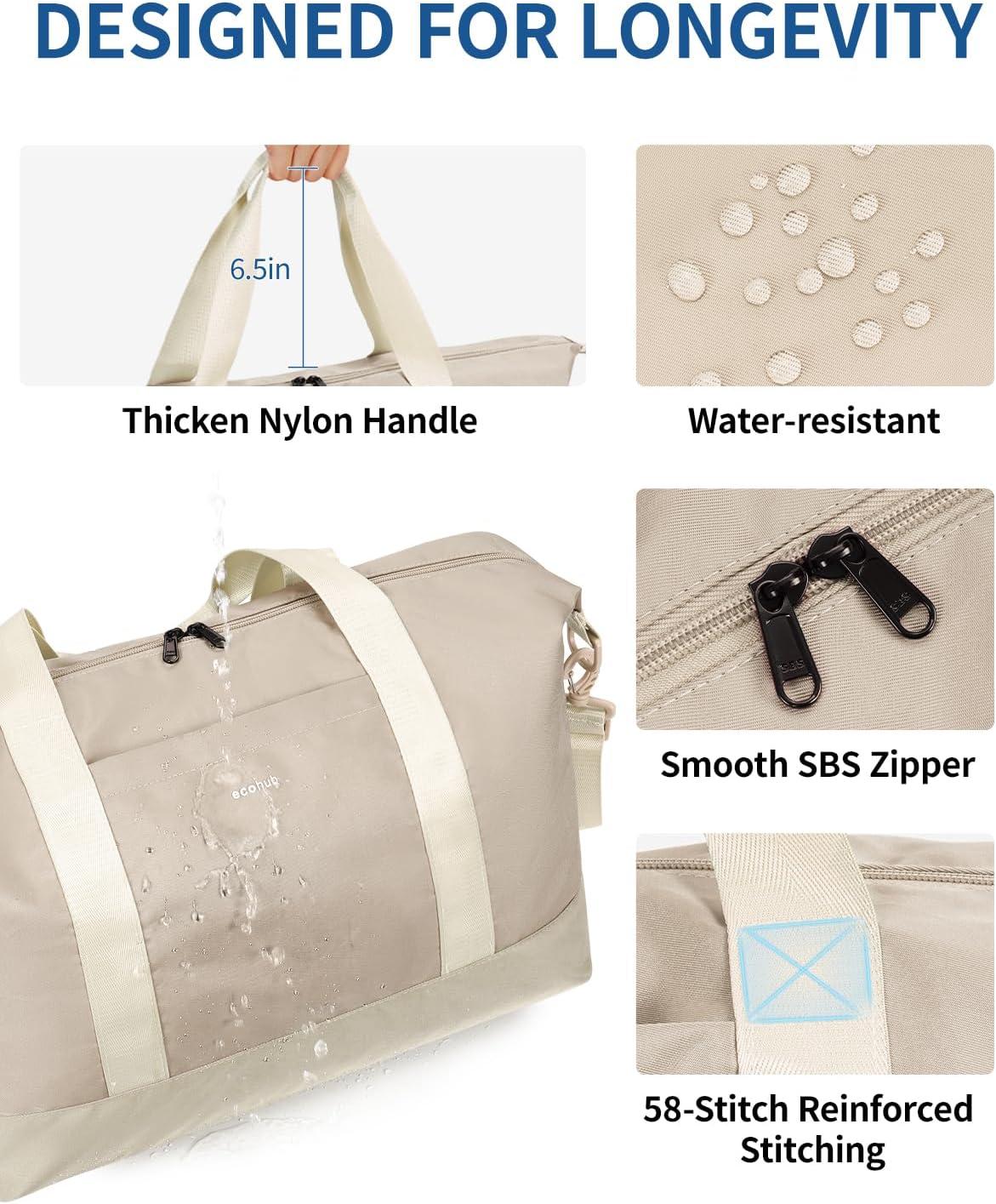 【MULTI-FUNCTIONAL DUFFLE BAG】: This travel duffel bag fits all your essentials and is perfect for travel, weekends, yoga, gym, beach, daily use, business trips, and sports. Use it as a travel tote, carry-on, overnight bag, weekender, gym bag, or hospital bag.