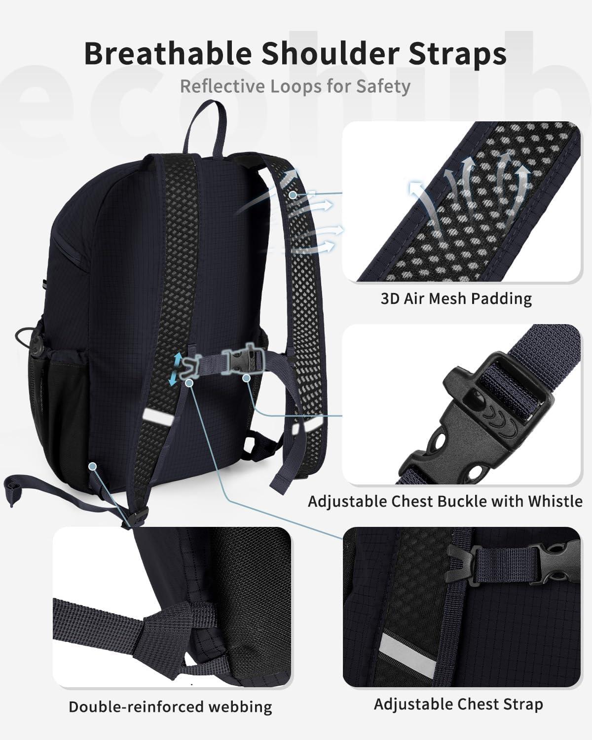 Be the first to review “ECOHUB 15L Lightweight Casual Daypack, Packable Backpack for Daily Use, Hiking & Travel, Foldable Small Backpack with Stretch Mesh Pockets, Water-Resistant Nylon, Reflective Design(Black)”