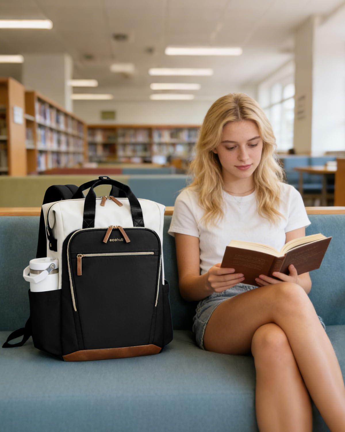 ECOHUB 17" Laptop bag for Women 25L Teacher's Laptop Backpack Work Backpack for Professional Nurse Travel Backpack, Blue(Black)