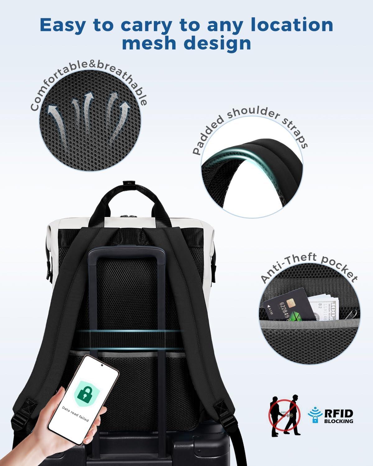 【Comfortable & Secure Travel Design】 Breathable mesh back panel and padded shoulder straps reduce shoulder pressure during long travel days. Hidden anti-theft pocket with RFID blocking protects cards and passport from unauthorized scanning and pickpocketing.