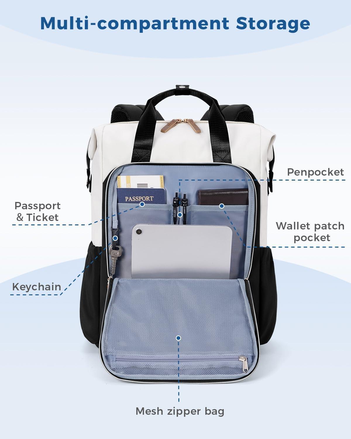 【25L Capacity with Smart Organization】 Multi-compartment design easily fits a 16.6” laptop and 13.5” iPad, with dedicated pockets for passport, wallet, pens, cables, and accessories. Fits all the daily essentials for Teachers/Colleges/Nurses/Travelers etc.lightweight to carry with no shoulder strain. Perfect for rushing to class or campus work, striking the ideal balance between practicality and portability.