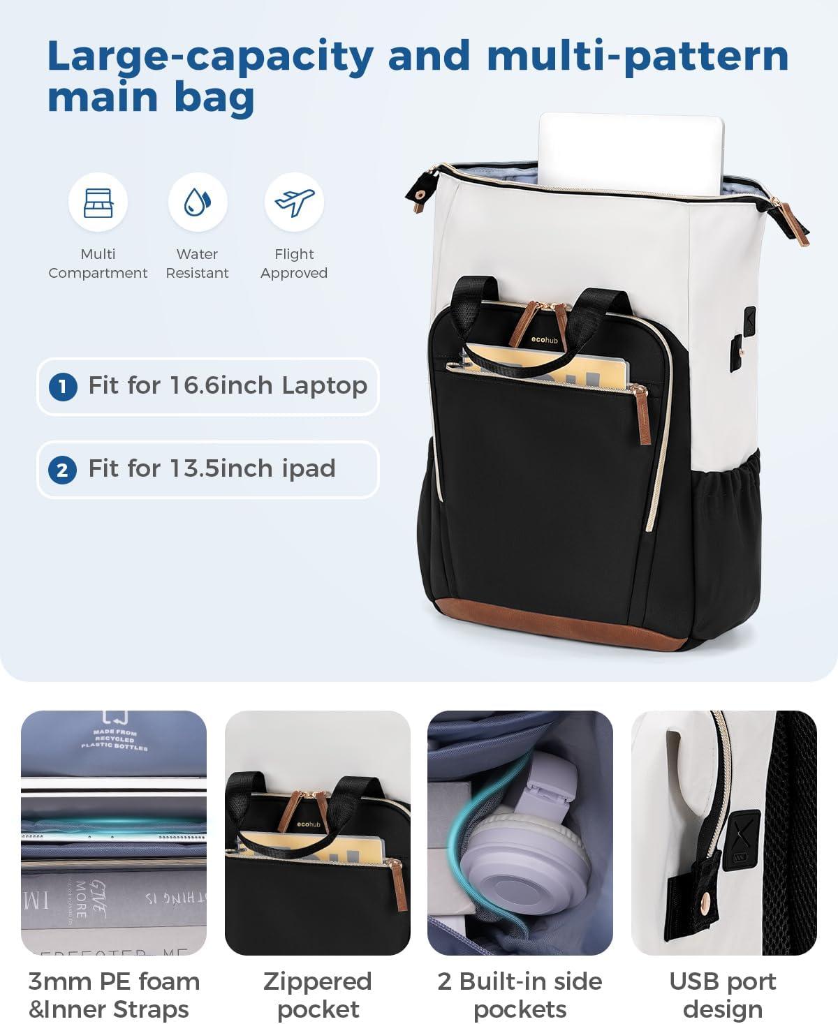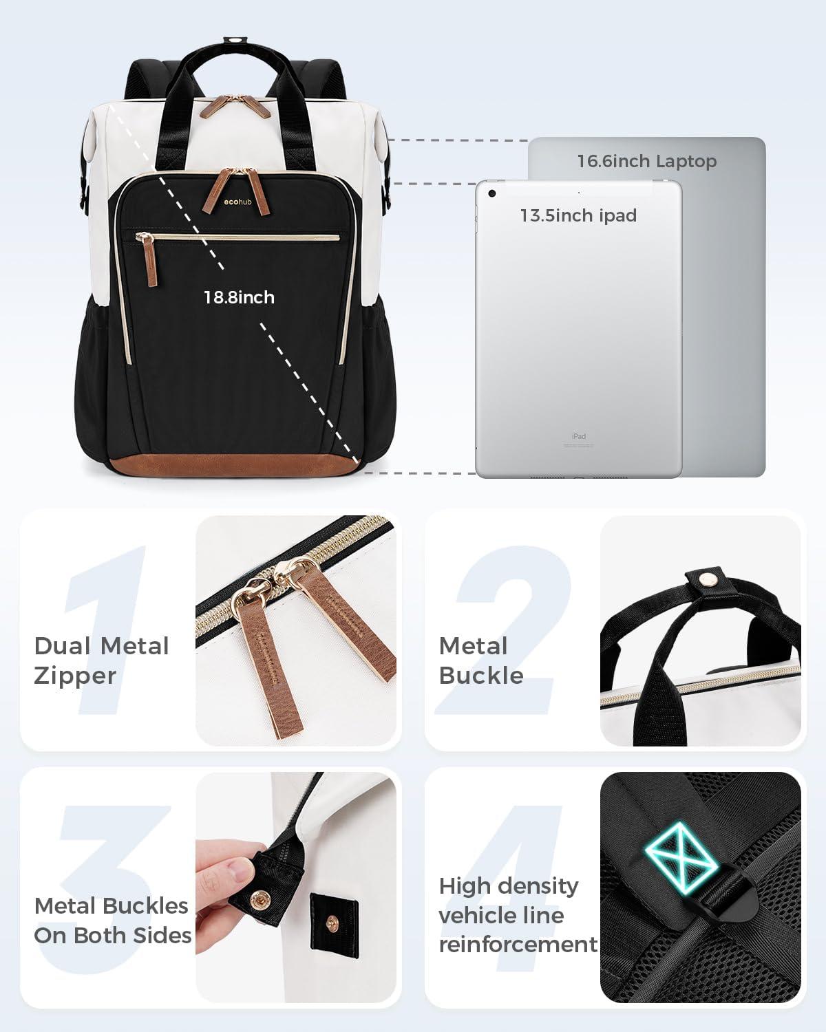 ECOHUB 17″ Laptop bag for Women 25L Teacher’s Laptop Backpack Work Backpack for Professional Nurse Travel Backpack, Blue(Black)