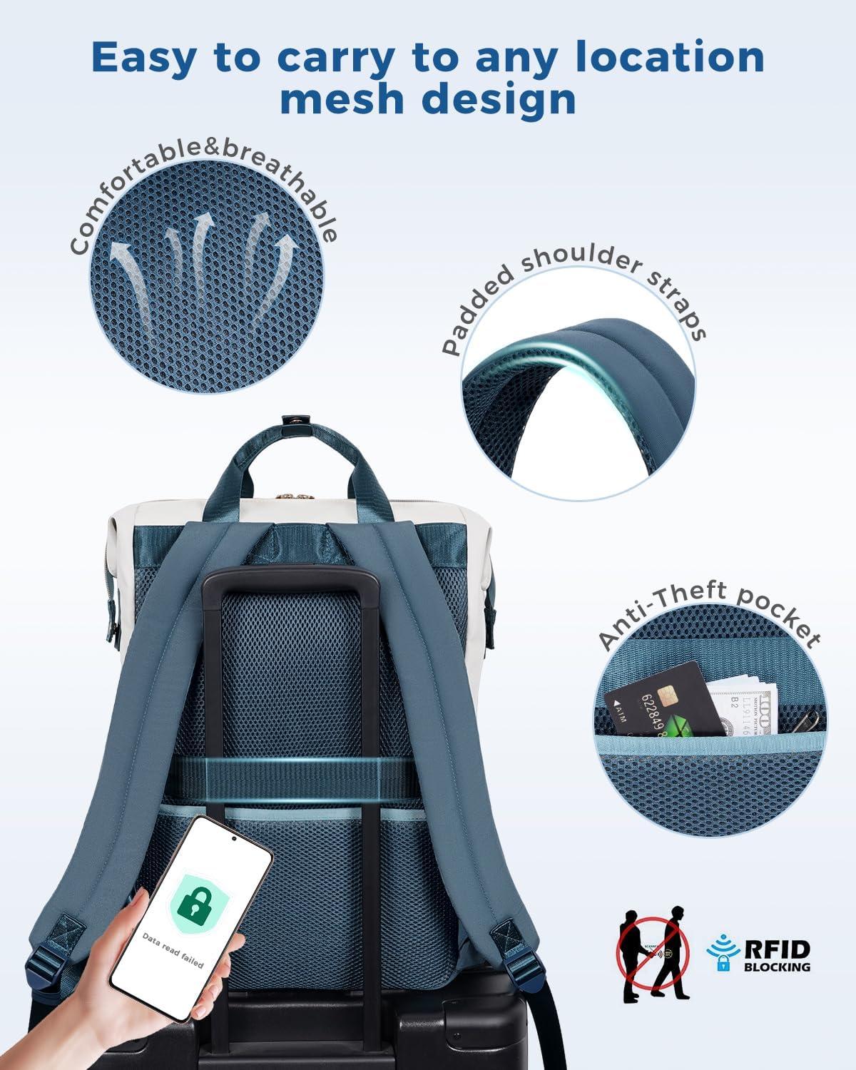 ECOHUB 17″ Laptop bag for Women 25L Teacher’s Laptop Backpack Work Backpack for Professional Nurse Travel Backpack, Blue(Green)