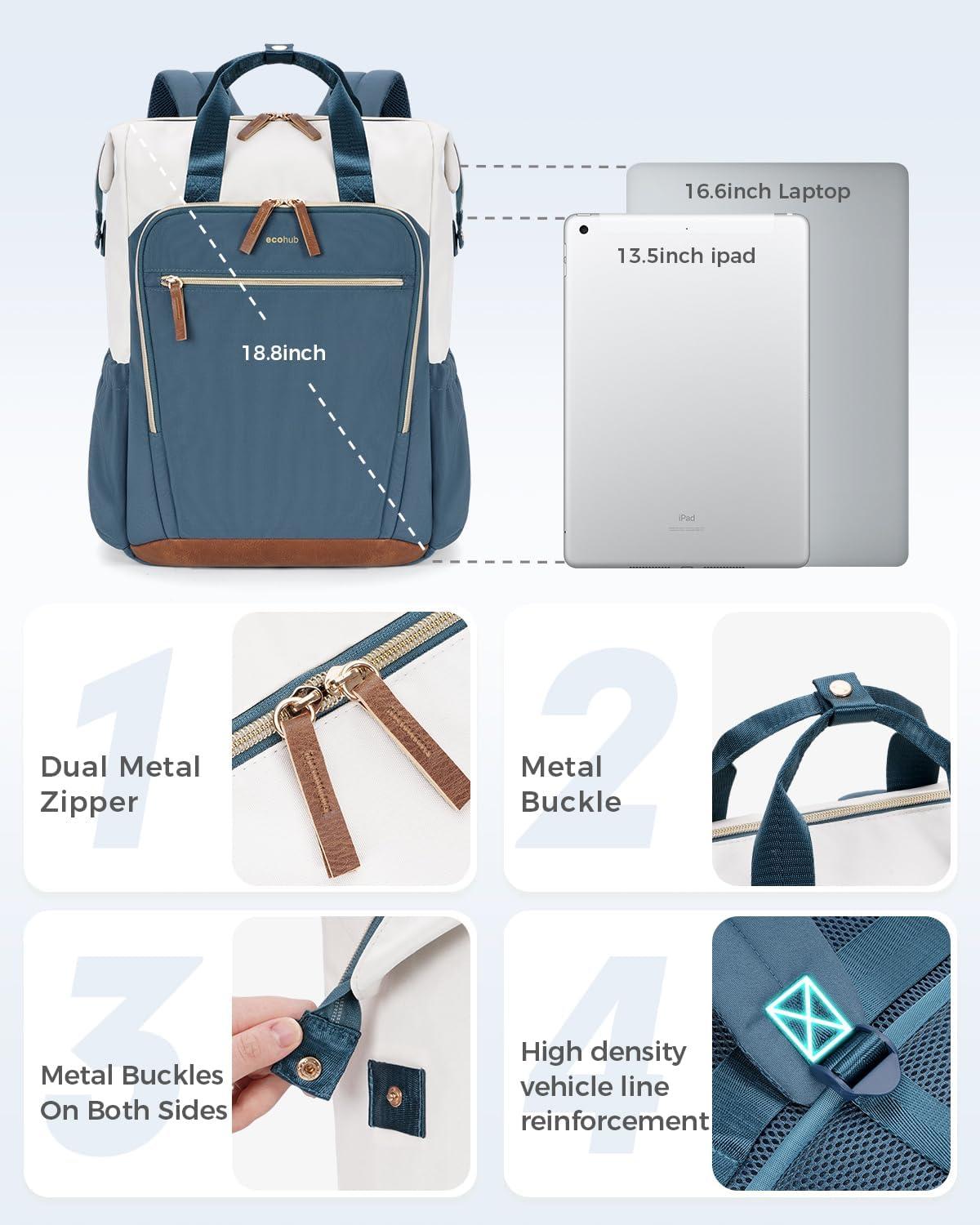 ECOHUB 17″ Laptop bag for Women 25L Teacher’s Laptop Backpack Work Backpack for Professional Nurse Travel Backpack, Blue(Blue)