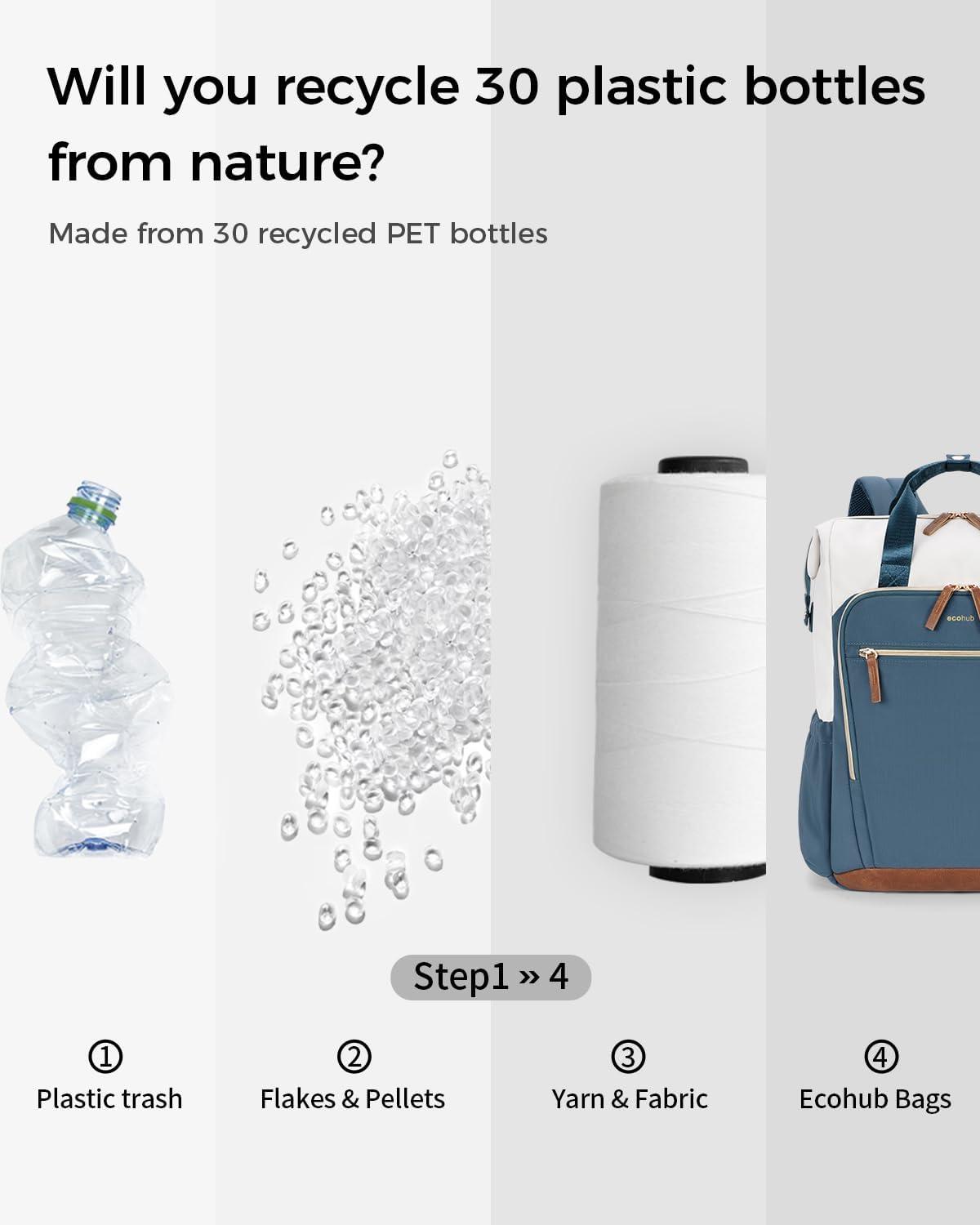 【Eco-Friendly Materials with Premium Details】 Crafted from recycled PET fabric made from approx. 30 plastic bottles, combining sustainability with durability. Stylish design works as a travel backpack, work laptop bag, or personal item for men and women.