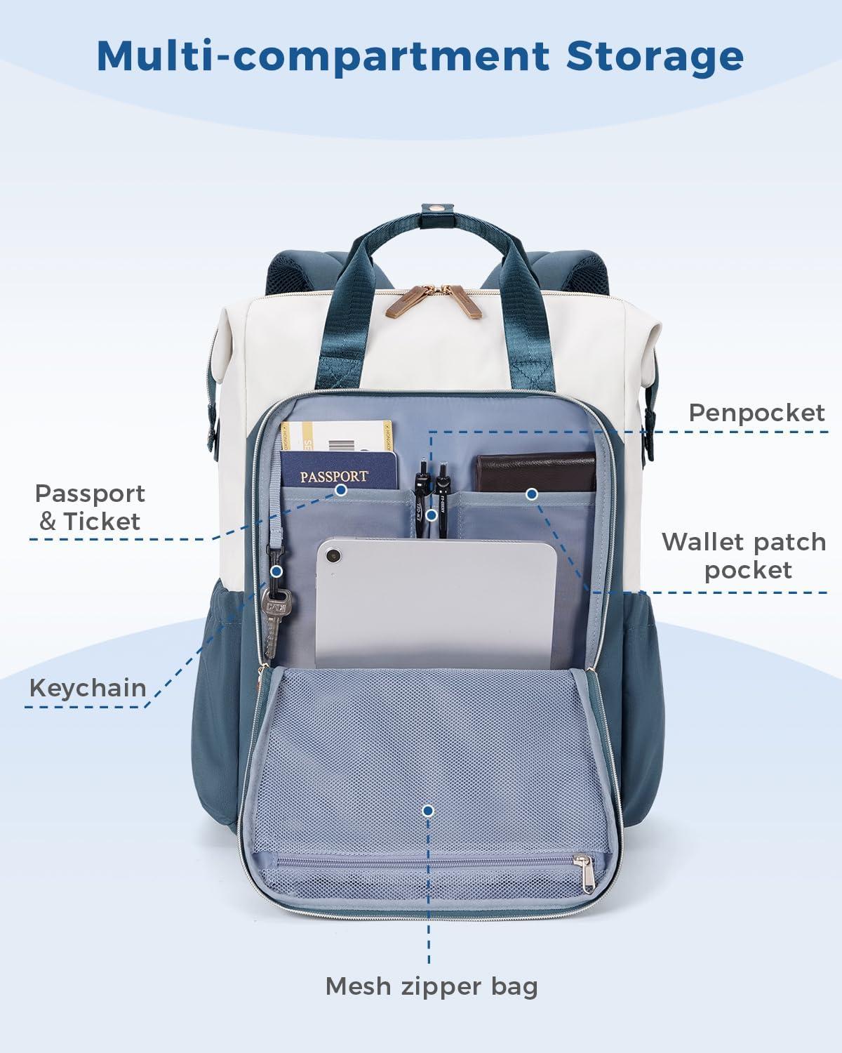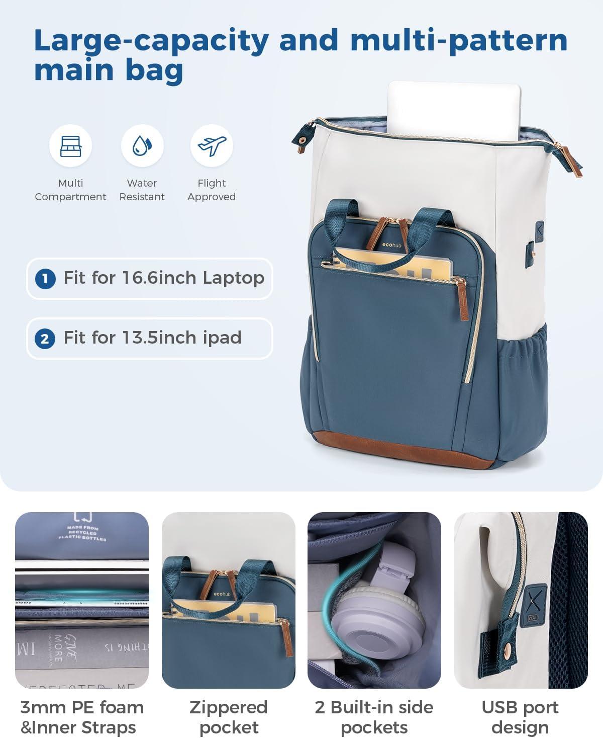 ECOHUB 17" Laptop bag for Women 25L Teacher's Laptop Backpack Work Backpack for Professional Nurse Travel Backpack, Blue(Blue)