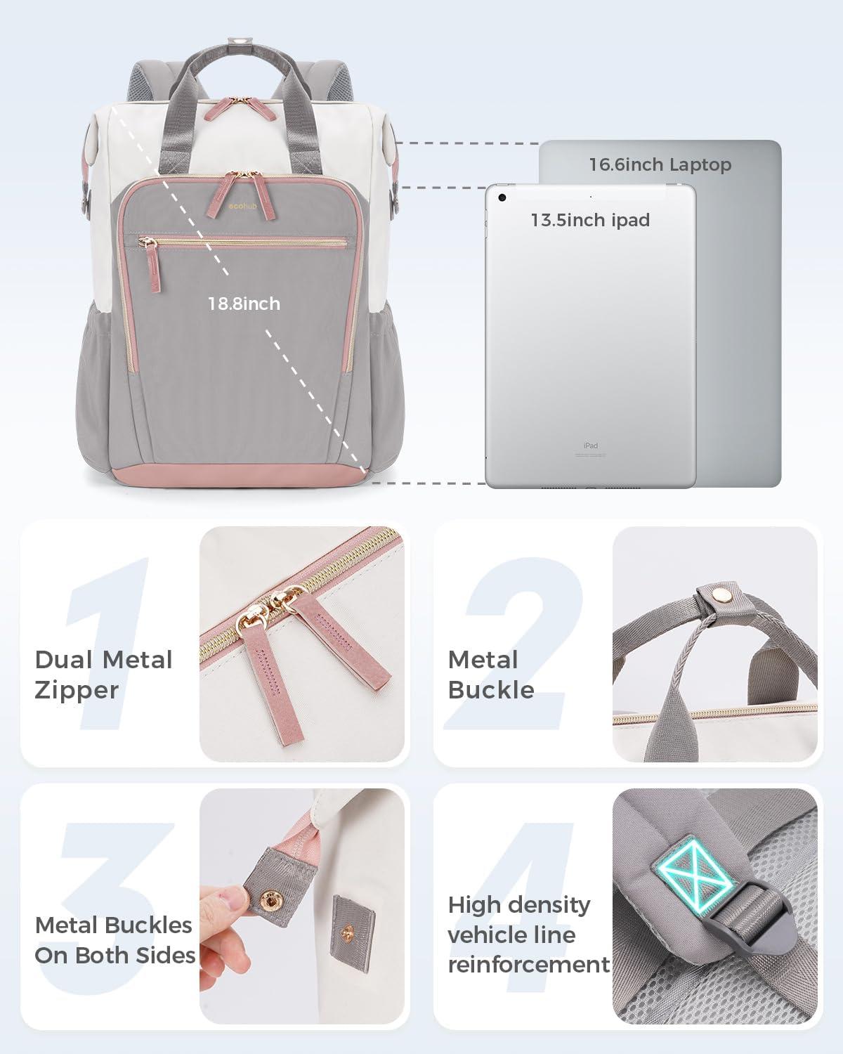 imageECOHUB 17 Laptop bag for Women 25L Teachers Laptop Backpack Work Backpack for Professional Nurse Travel Backpack BlueGrey