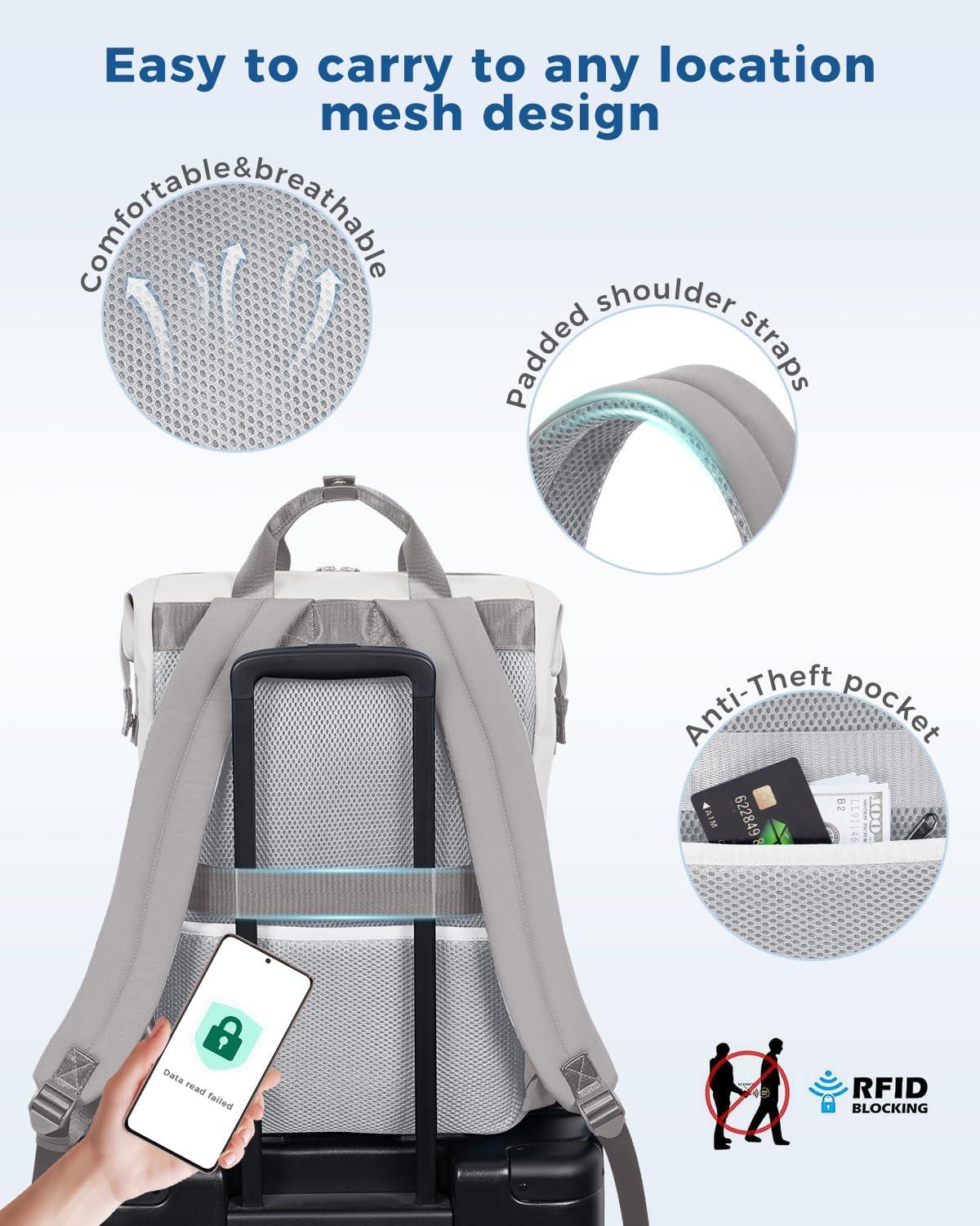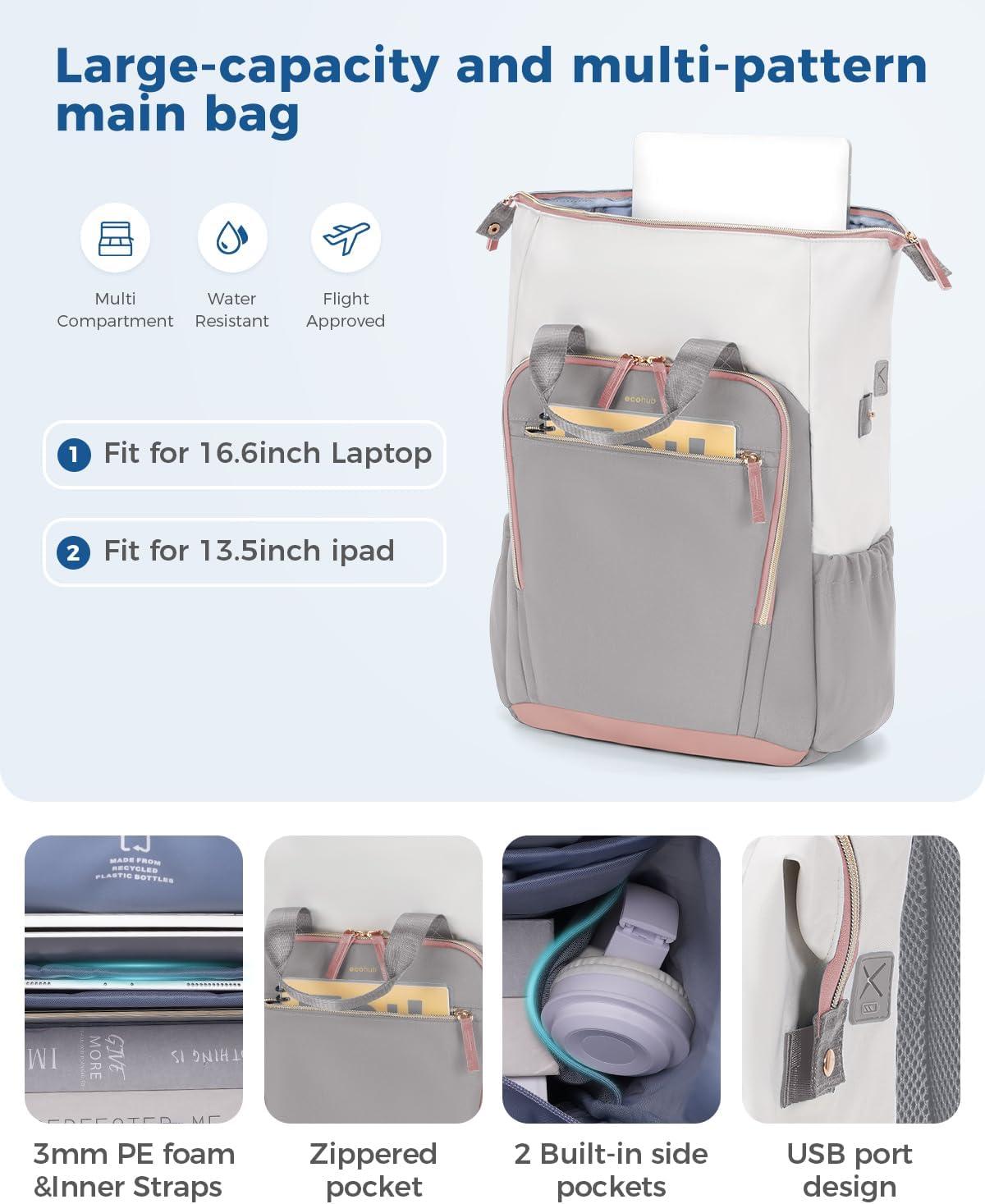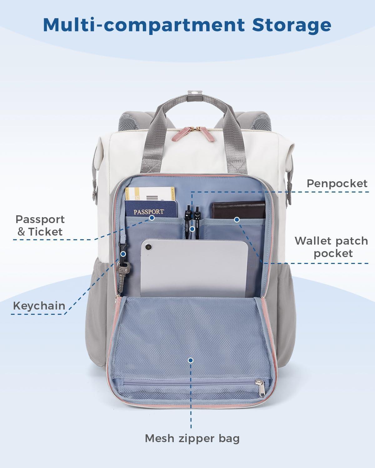【25L Capacity with Smart Organization】 Multi-compartment design easily fits a 16.6” laptop and 13.5” iPad, with dedicated pockets for passport, wallet, pens, cables, and accessories. Fits all the daily essentials for Teachers/Colleges/Nurses/Travelers etc.lightweight to carry with no shoulder strain. Perfect for rushing to class or campus work, striking the ideal balance between practicality and portability.