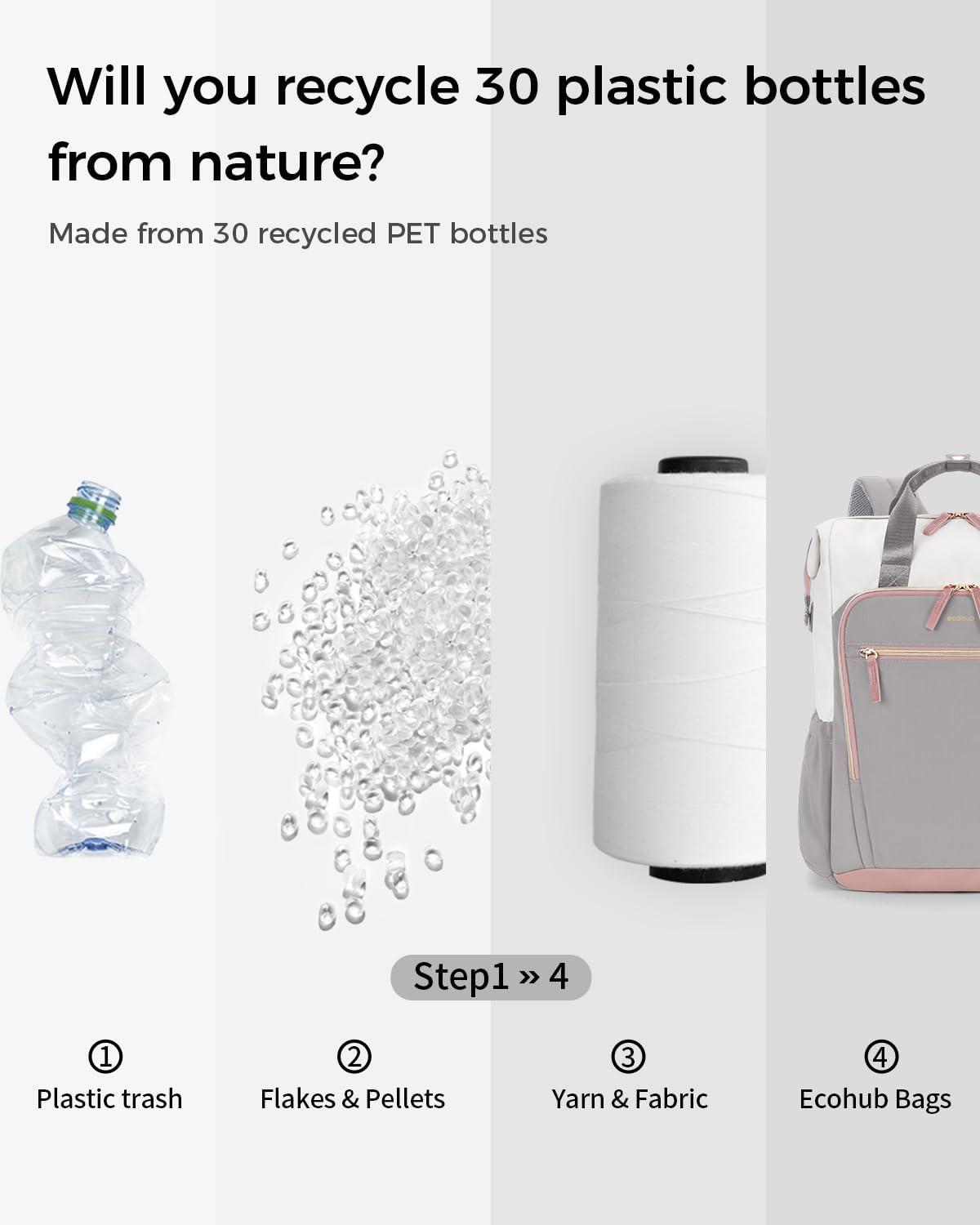 【Eco-Friendly Materials with Premium Details】 Crafted from recycled PET fabric made from approx. 30 plastic bottles, combining sustainability with durability. Stylish design works as a travel backpack, work laptop bag, or personal item for men and women.