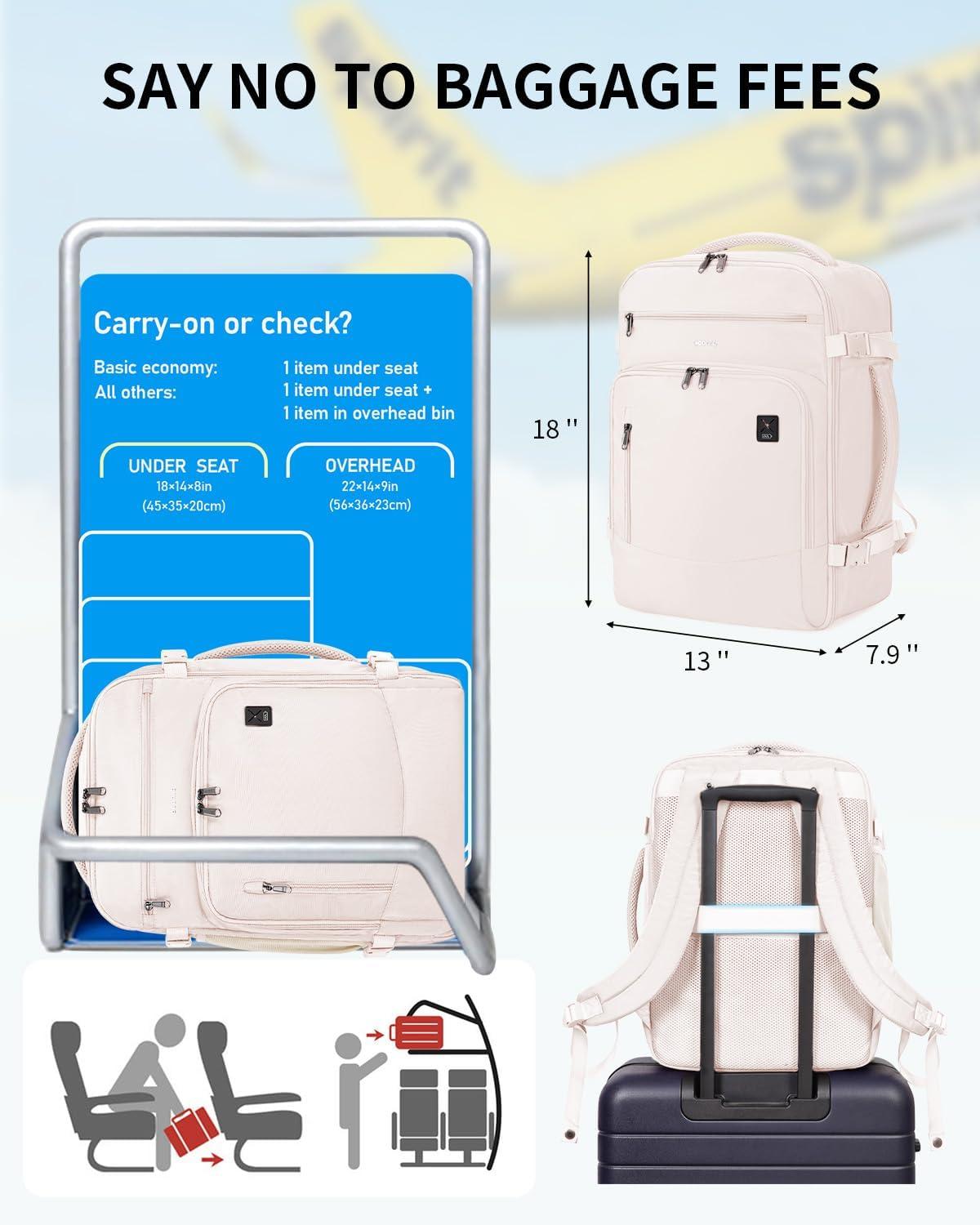 【SAY NO TO BAGGAGE FEES】: The ECOHUB 25L Carry On Bag is perfectly sized to meet United Airlines' personal item requirements. Measuring 17″ x 10″ x 9″ and weighing just 1.6 lbs, it fits neatly under the seat. It’s also compatible with Spirit, Frontier, EasyJet and many other airlines. (Patent Pending)
