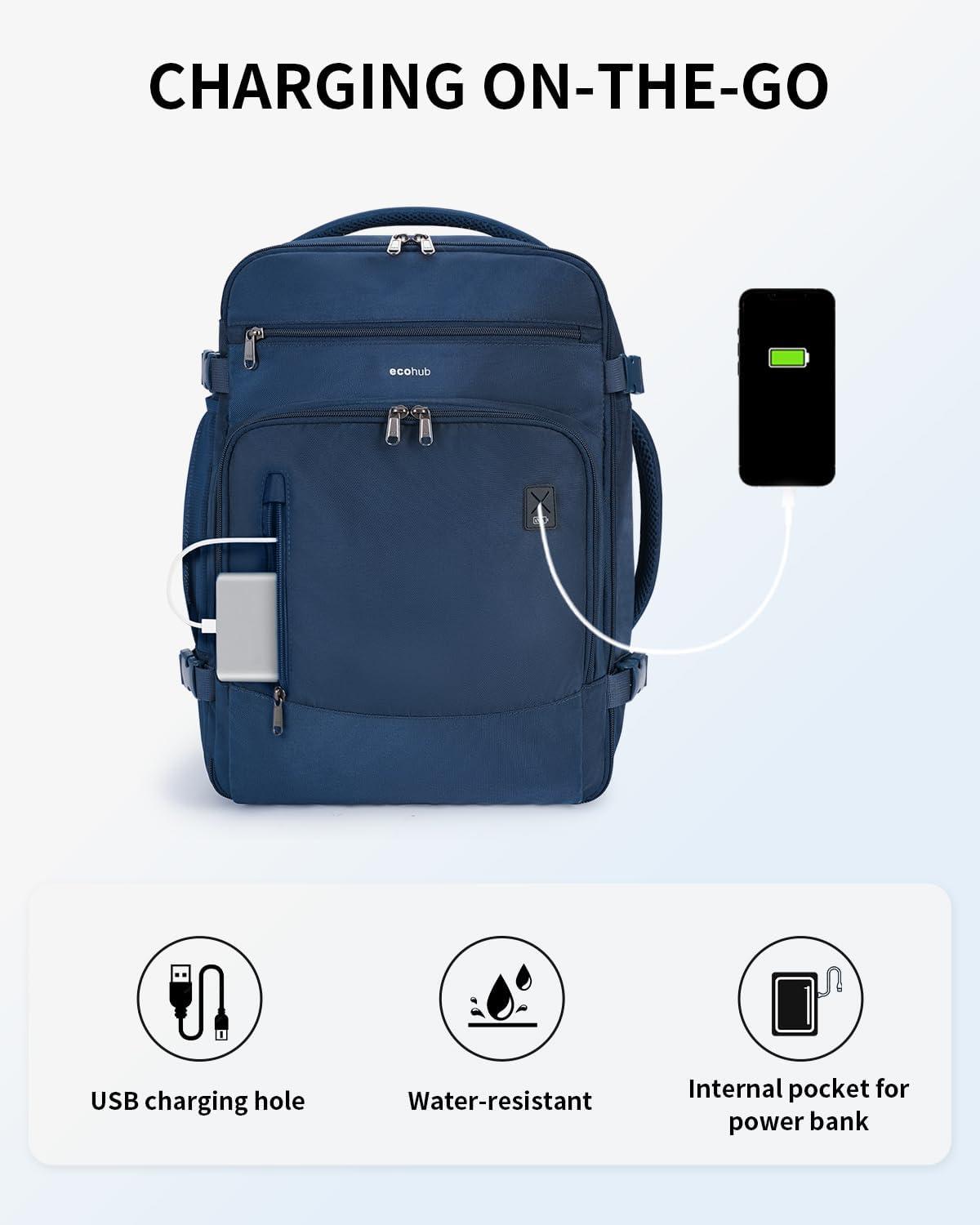 【SAY NO TO BAGGAGE FEES】: The ECOHUB 25L Carry On Bag is perfectly sized to meet United Airlines' personal item requirements. Measuring 17″ x 10″ x 9″ and weighing just 1.6 lbs, it fits neatly under the seat. It’s also compatible with Spirit, Frontier, EasyJet and many other airlines. (Patent Pending)