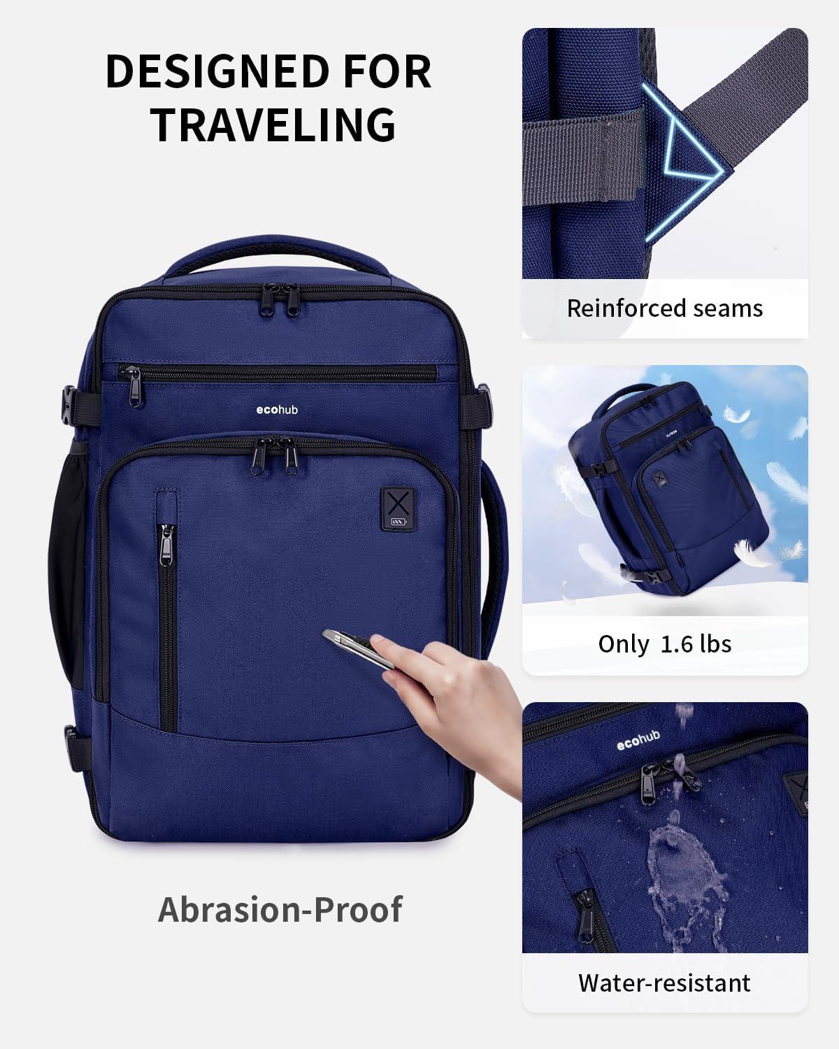 【SAY NO TO BAGGAGE FEES】: The ECOHUB 25L Carry On Bag is perfectly sized to meet United Airlines' personal item requirements. Measuring 17″ x 10″ x 9″ and weighing just 1.6 lbs, it fits neatly under the seat. It’s also compatible with Spirit, Frontier, EasyJet and many other airlines. (Patent Pending)
