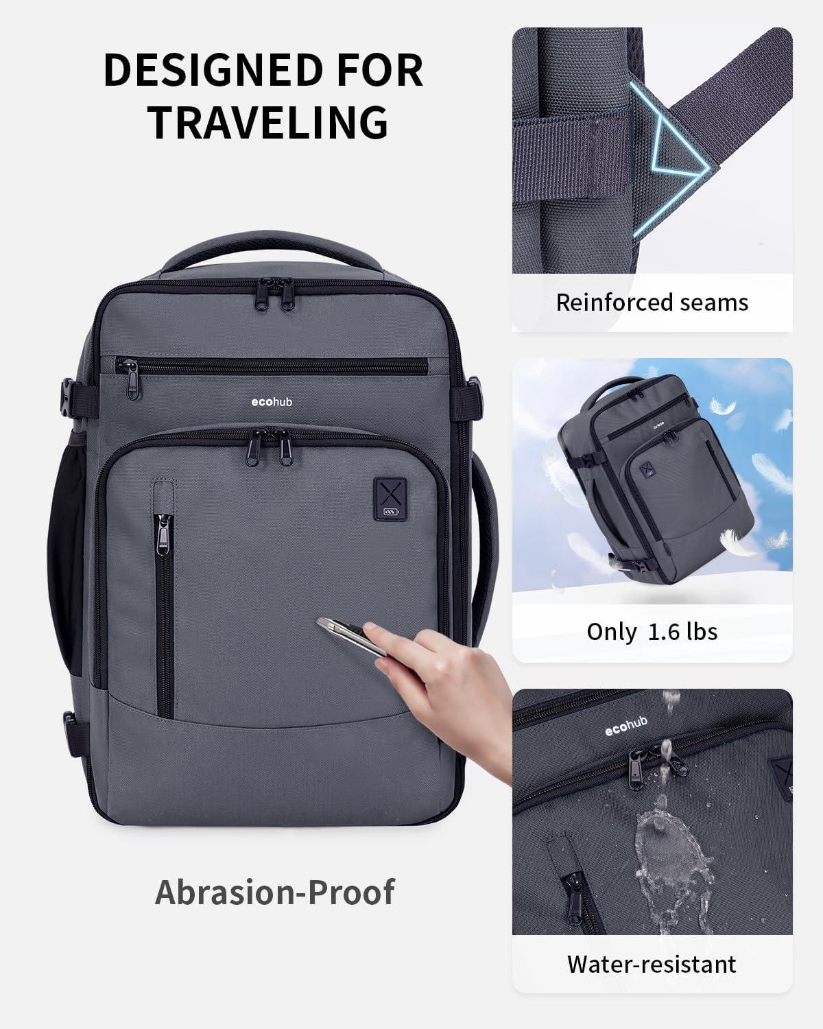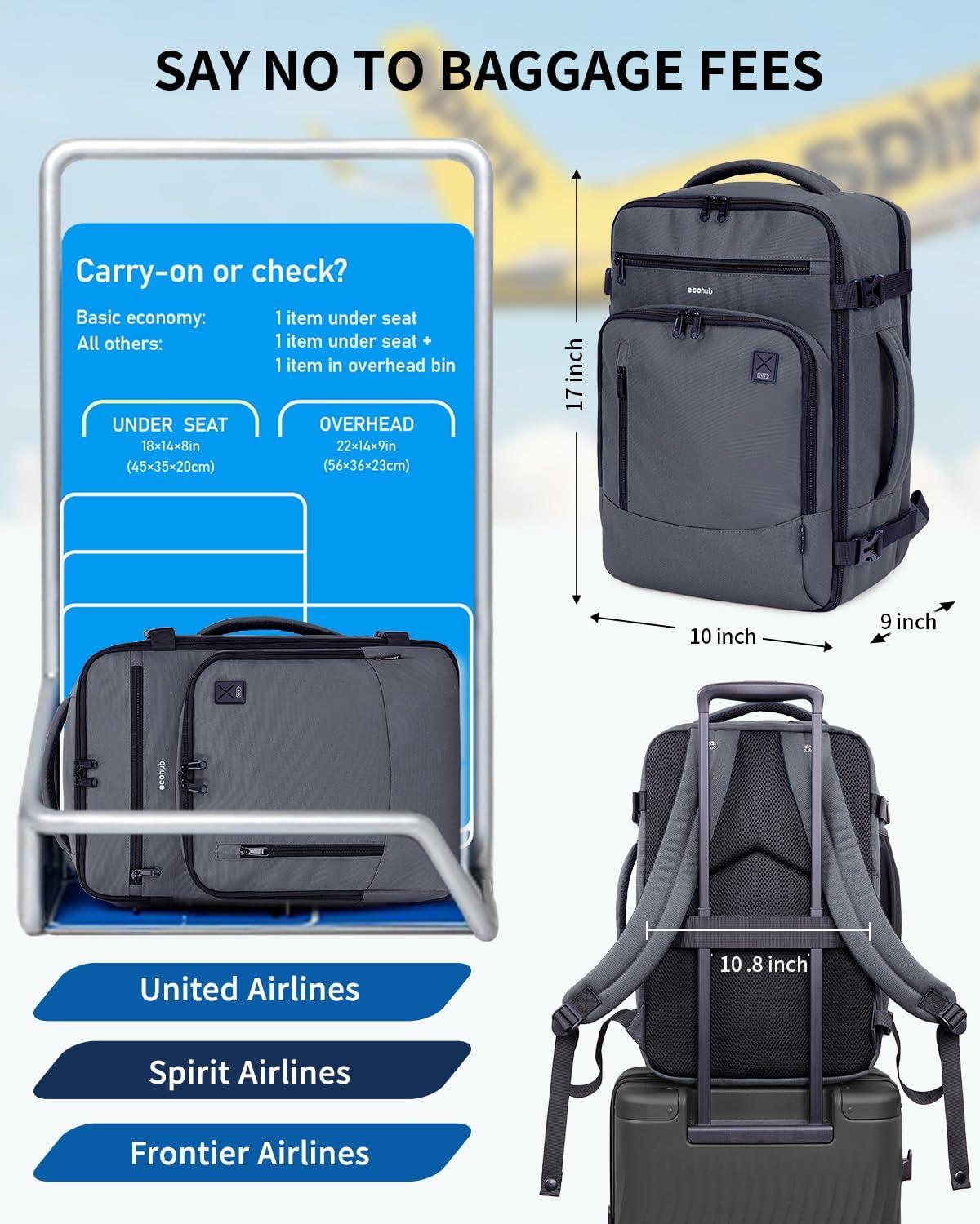 【SAY NO TO BAGGAGE FEES】: The ECOHUB 25L Carry On Bag is perfectly sized to meet United Airlines' personal item requirements. Measuring 17″ x 10″ x 9″ and weighing just 1.6 lbs, it fits neatly under the seat. It’s also compatible with Spirit, Frontier, EasyJet and many other airlines. (Patent Pending)