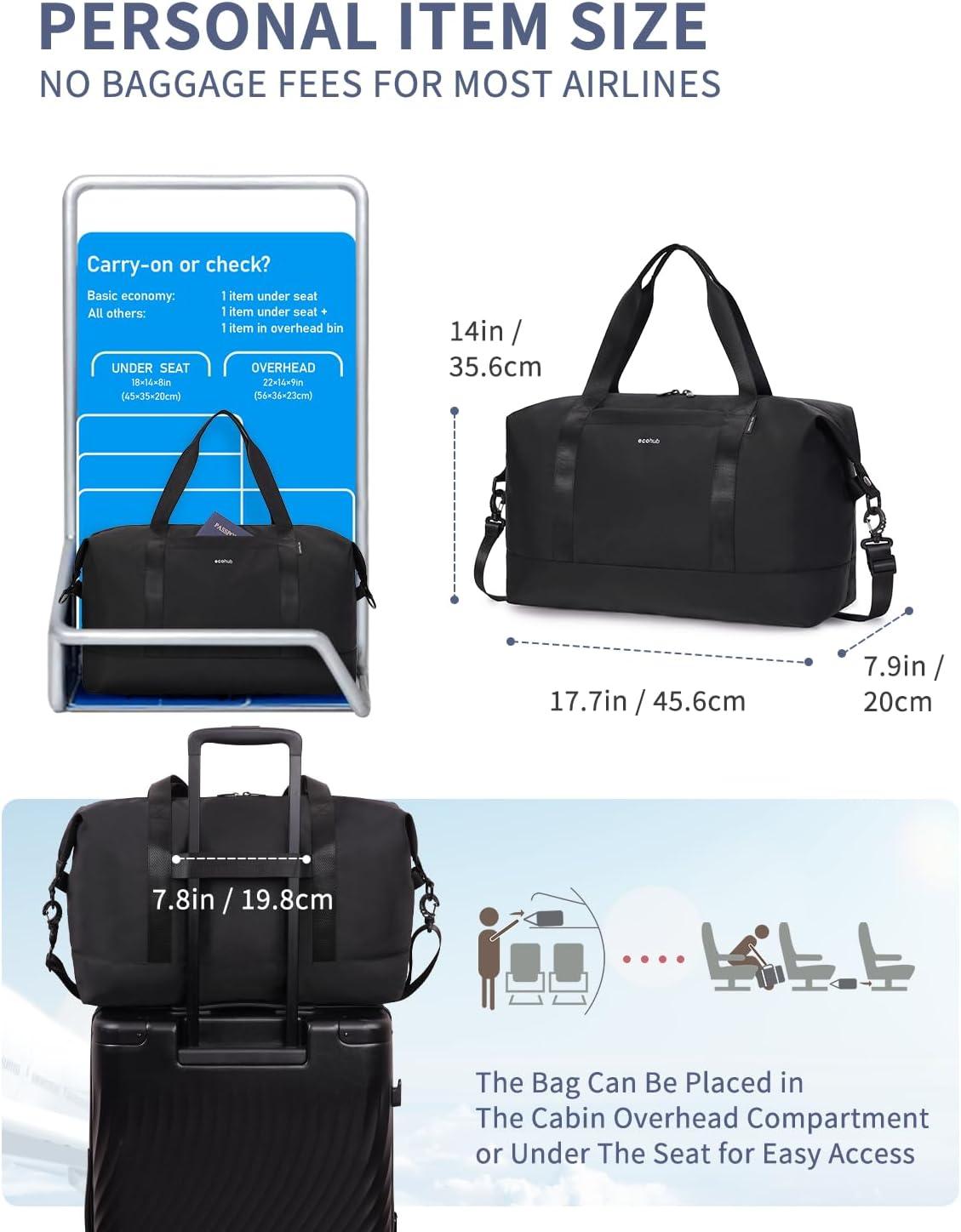 Travel Duffle Bag, Personal Item Travel Bag 18x14x8 Underseat