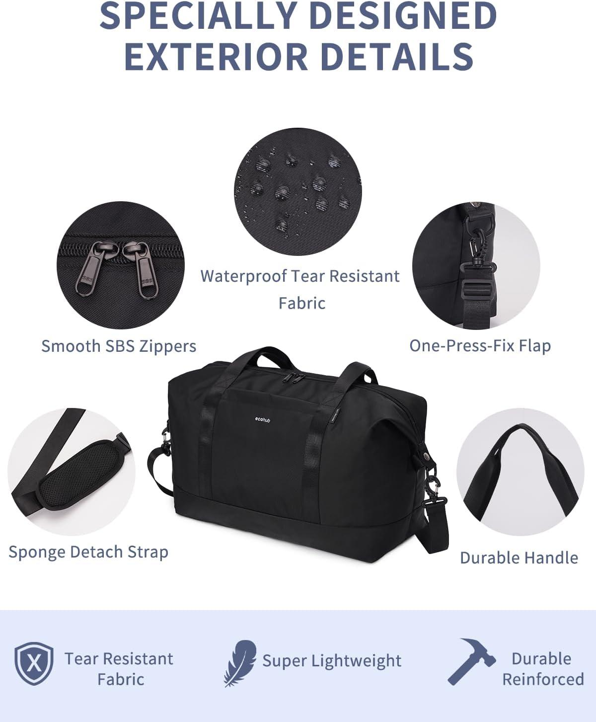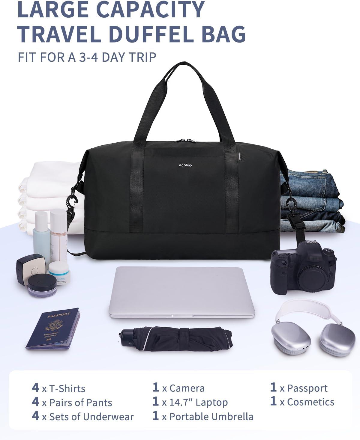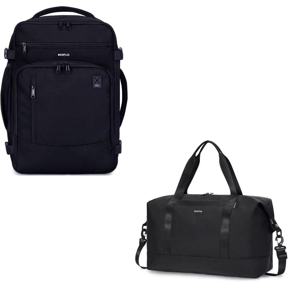 ECOHUB 17″ Small Travel Backpack, United Airlines Personal Item Bag 17x10x9 with 16 Pockets, Water Resistant Rucksacks Fit 15.6″ Laptop, AirTag Pocket, Lightweight Casual Daypack, 25L, BlackECOHUB Travel Duffle Bag, Personal Item Travel Bag 18x14x8 Underseat, Water – Resistant Gym Bag, Weekend Travel Essentials Bags, 30L Black