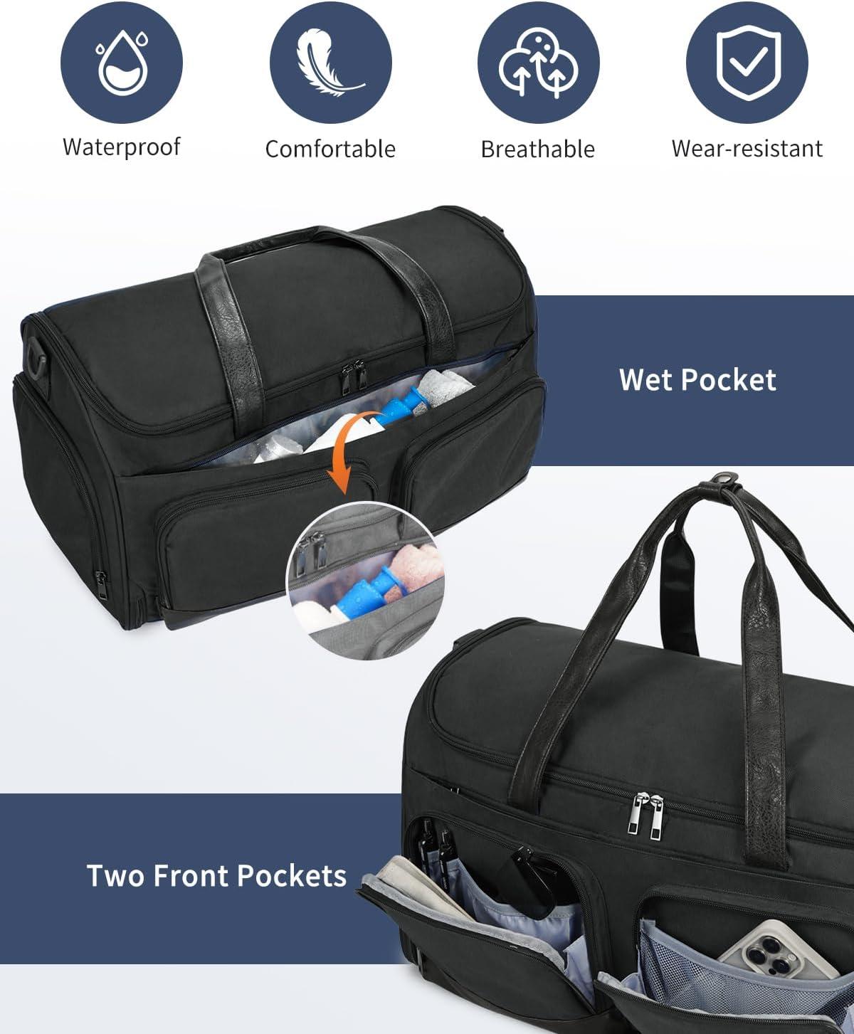 Keep Wet & Dry Items Separate: Features a large, plastic-lined wet pocket for damp clothes, towels, or swimwear, plus a dedicated shoe compartment that fits multiple pairs. Keeps shoes away from your formal wear. (Patent pending)