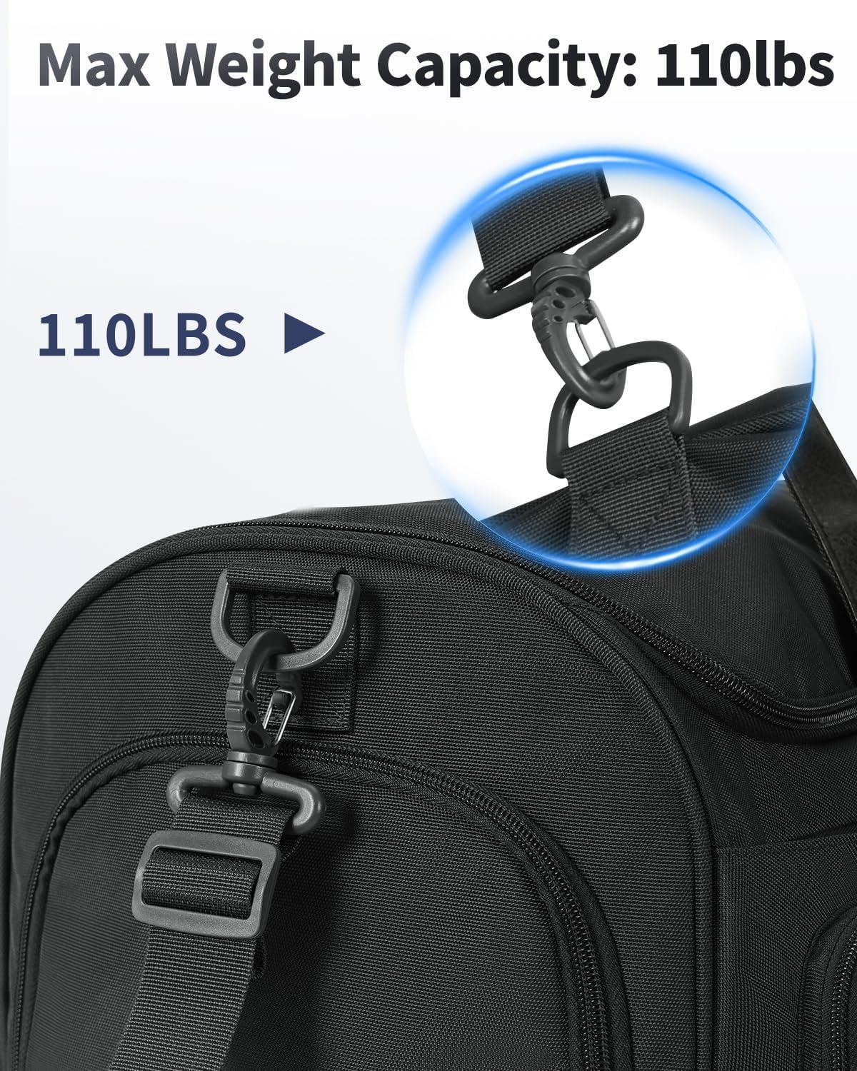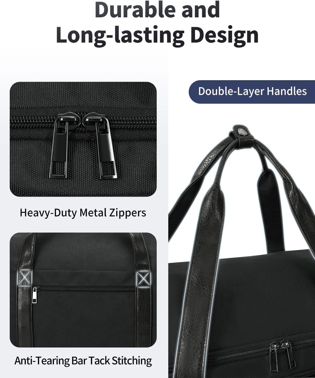 Durable & Reliable: Made with scratch-proof, waterproof fabric and heavy-duty zippers that open smoothly. Double-reinforced, detachable handles offer hand-carry and hanging options. Supports up to 110lbs with reinforced stitches and buckles for secure travel. (Patent pending)