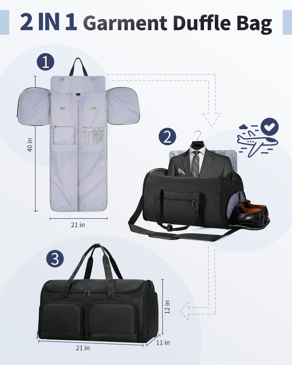 ECOHUB 2-in-1 Garment Bag & Duffel Bag: The perfect travel companion, combining a garment bag and duffel bag in one design. Ideal for business trips, weekend getaways, or any travel occasion, offering both business and casual functionality in one. (Patent pending)
