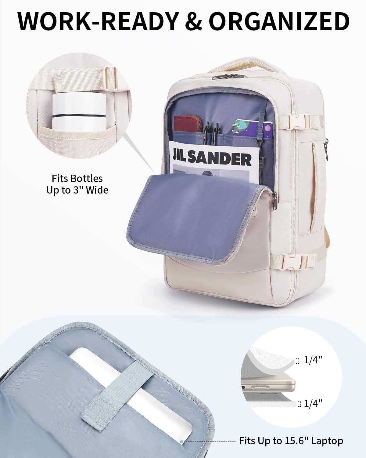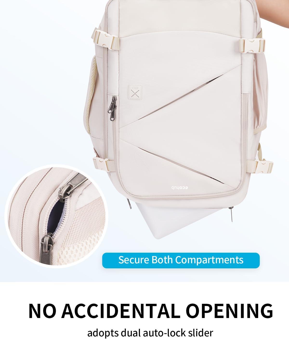 【Flight Approved Carry on Backpack】: The travel bag has a 180 degree zipper closure to help you quickly pass through security checks. It meets the requirements for carrying with US, Delta, Southwest, Lufthansa, Japan, Australia, UAE, and Qatar Airways and is suitable for being placed on top of your head or under your seat, letting you travel WITHOUT BAGGAGE FEES.