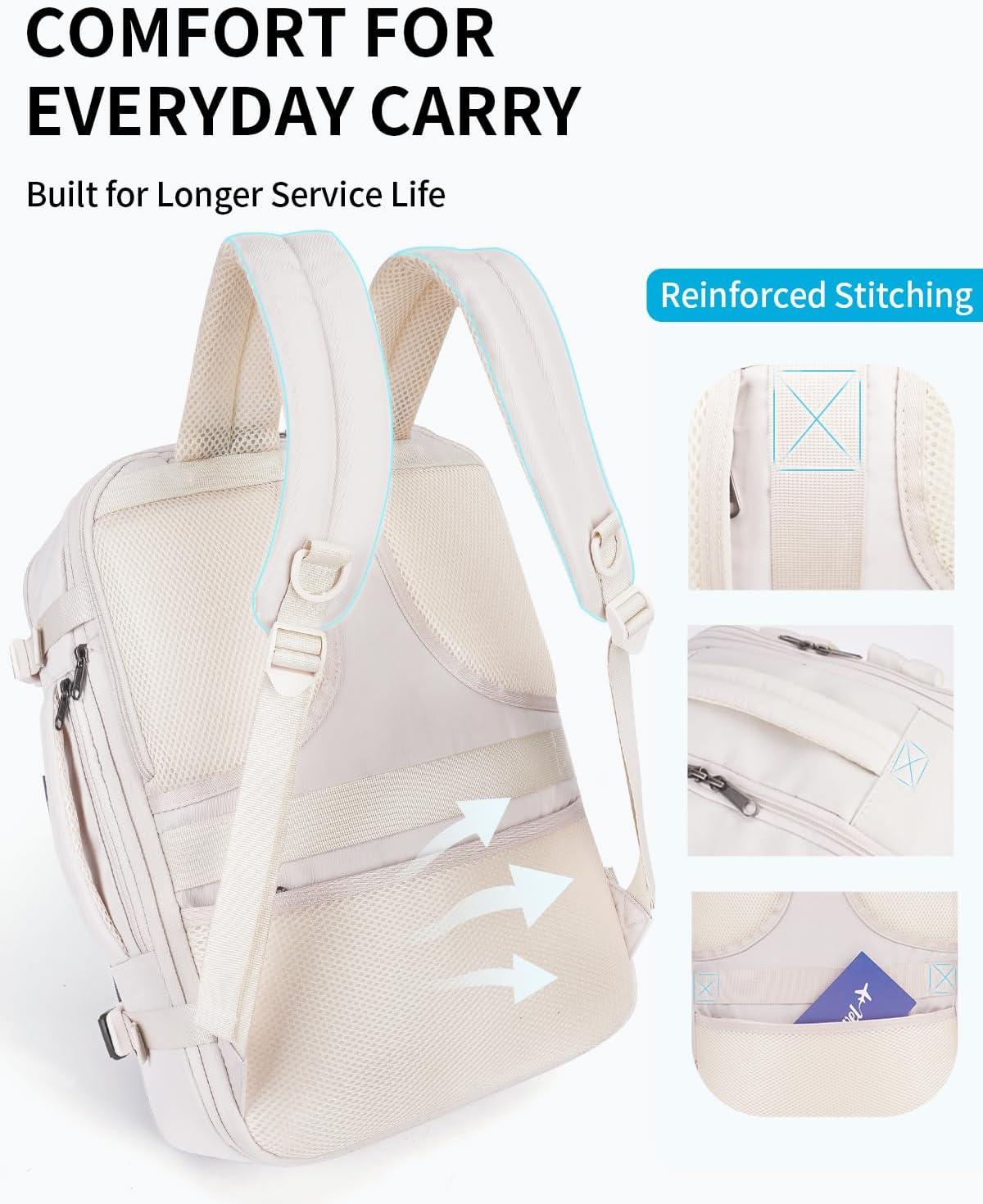 【Comfy&Sturdy】: The carry on backpack adopting a comfortable airflow back design with thick but soft panel ventilated padding, compliant with ergonomics.At the same time, padded shoulder straps evenly distribute weight and adjustable shoulder straps reduce shoulder pressure, providing you with maximum back support.