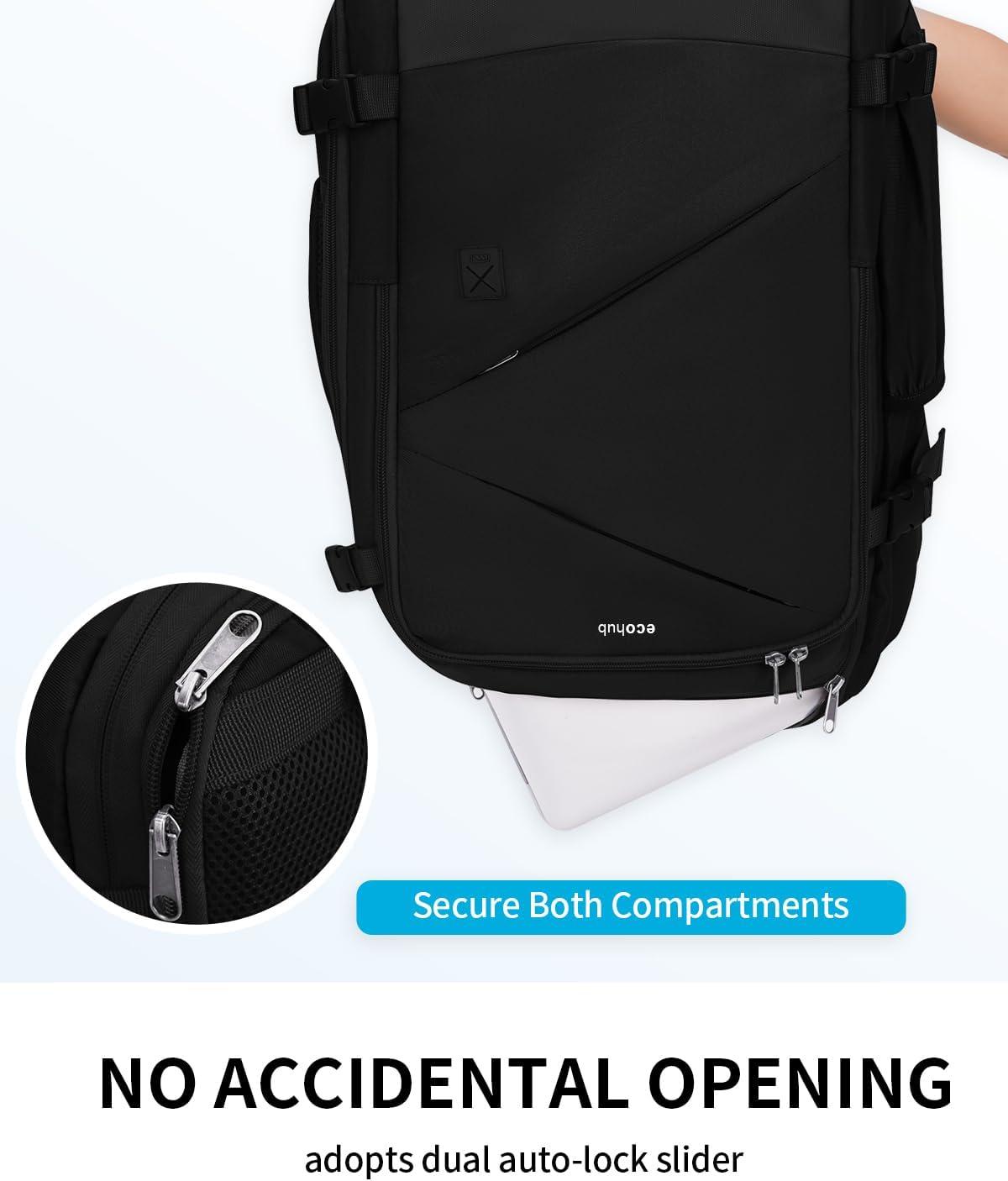 【Large Capacity & Multi-Pocket】: The ECOHUB laptop bag (18″×12.7″×6″, expandable to 8″) offers spacious storage with multiple well-organized pockets: main compartment, wet/dry separation pocket, 17″ laptop sleeve. it features two auto-lock sliders on the main and laptop compartments to prevent accidental openings. An anti-theft pocket on the back keeps your valuables safe, while a side pocket allows for quick access to your passport-perfect for travel.