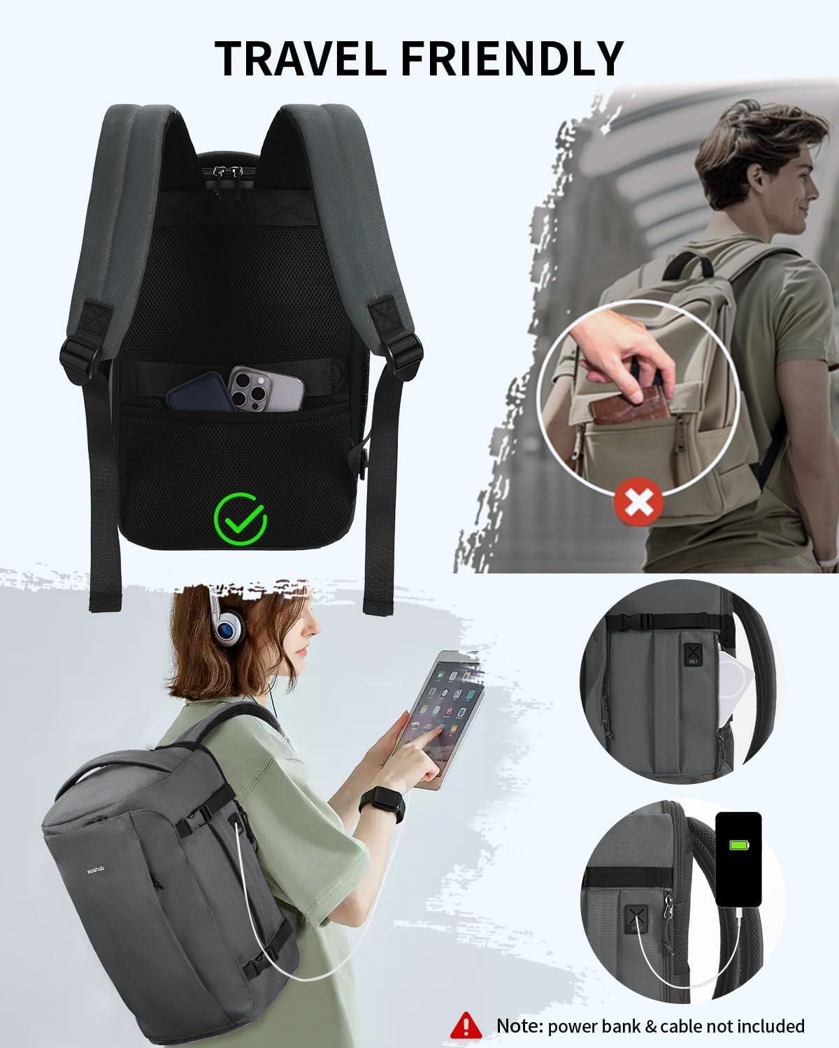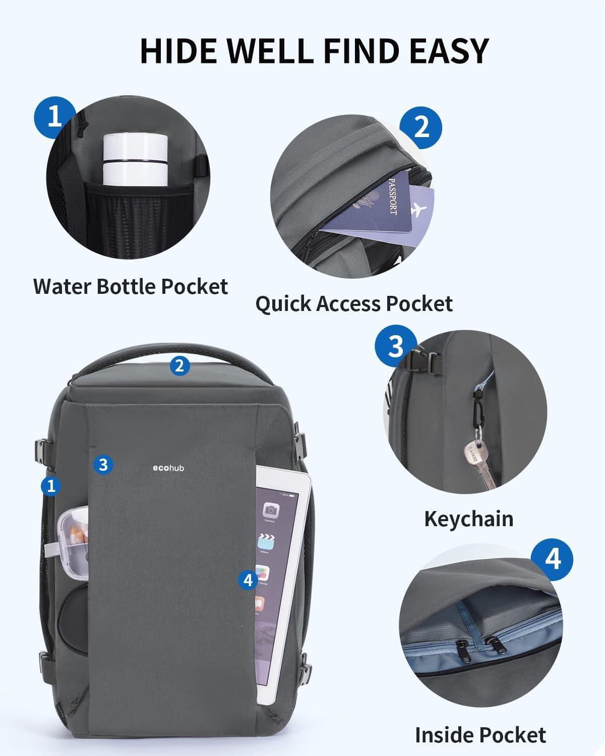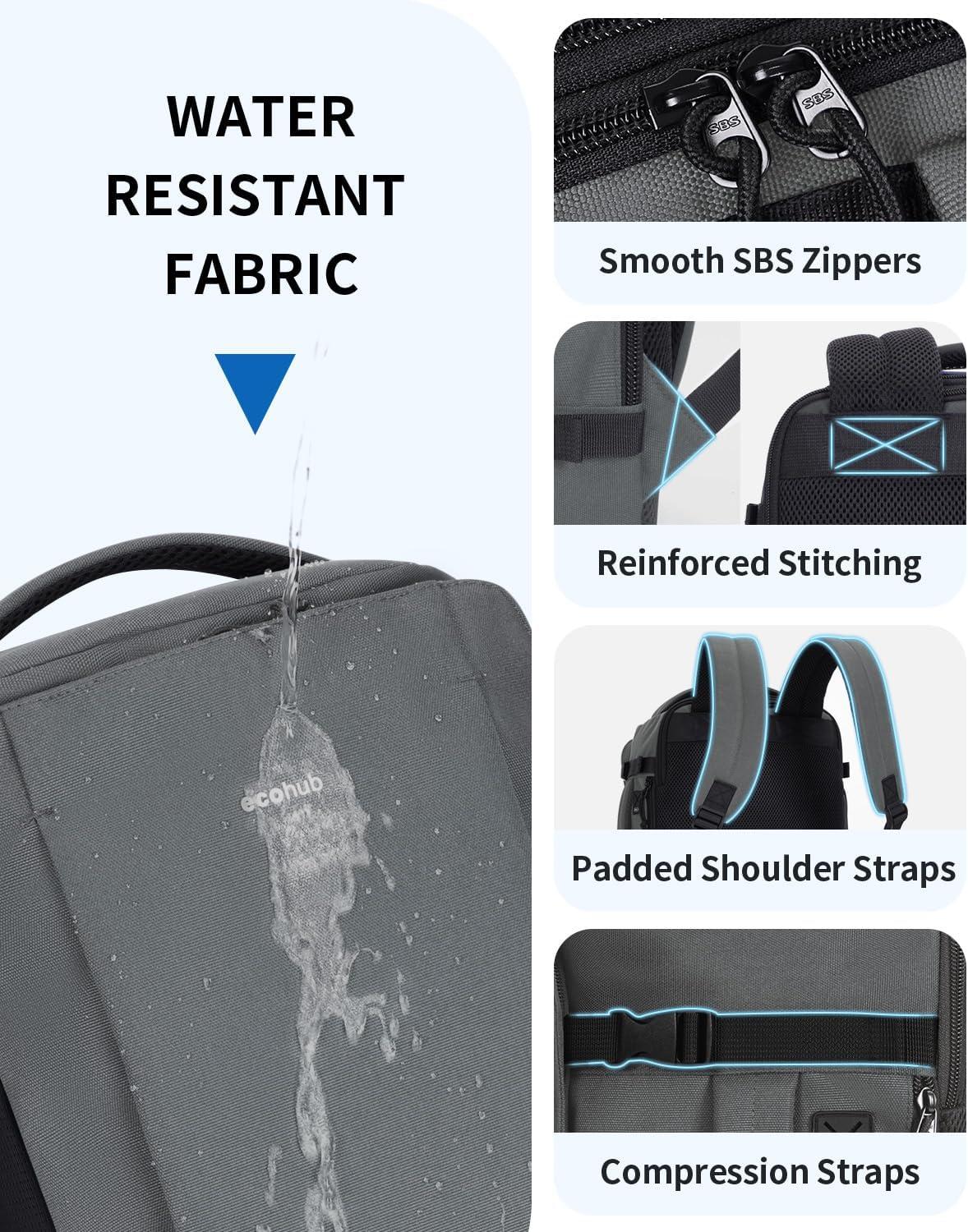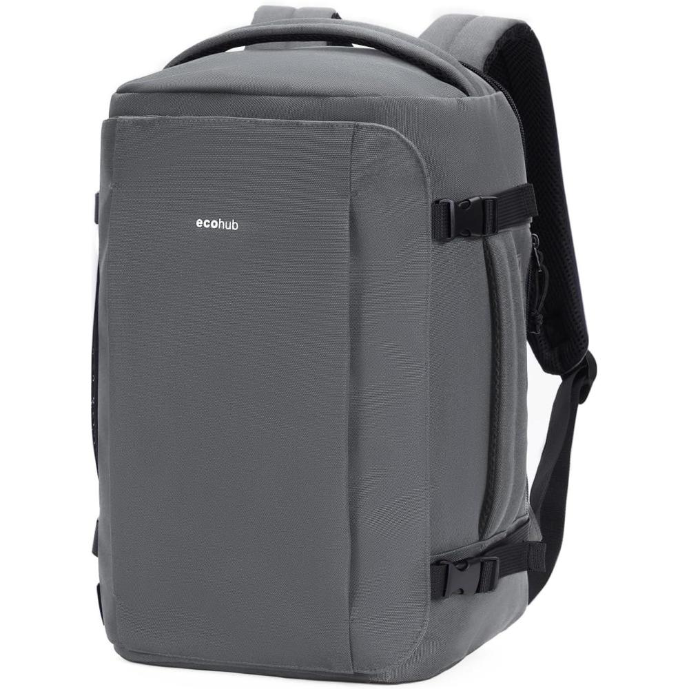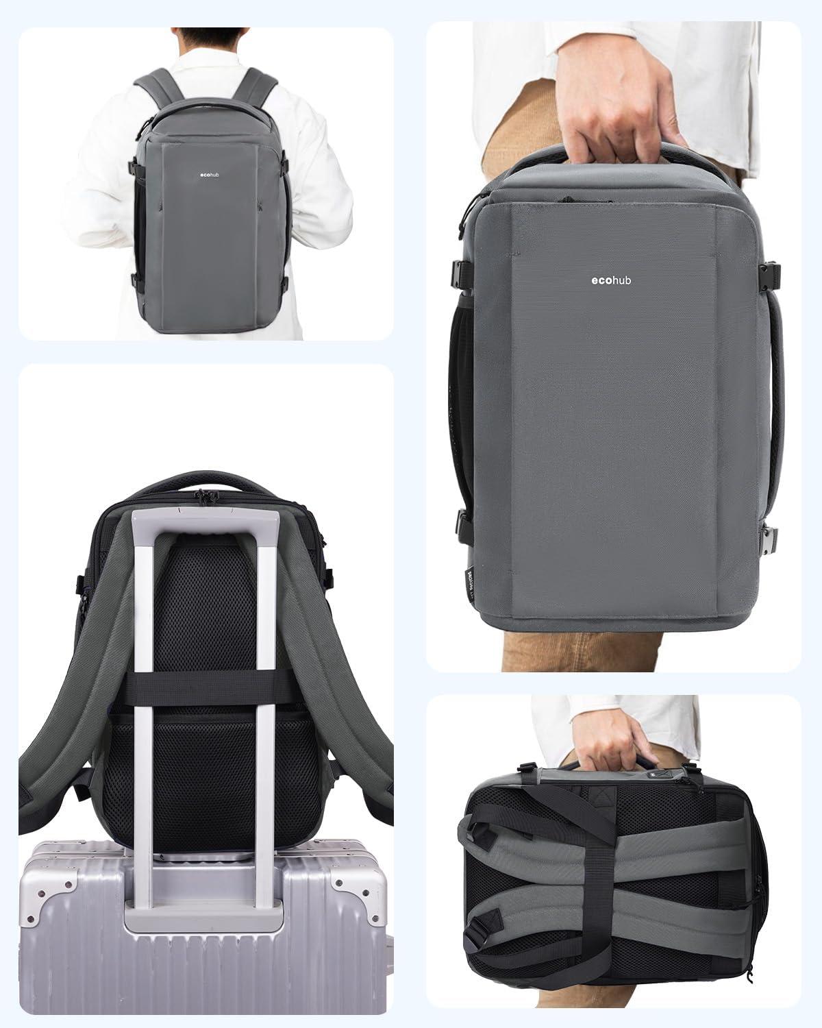 imageECOHUB 40L CarryOn Travel Backpack TSAFriendly AntiTheft WaterResistant Lightweight with 173 Laptop Compartment Durable PFASFree Rucksack BlackGrey