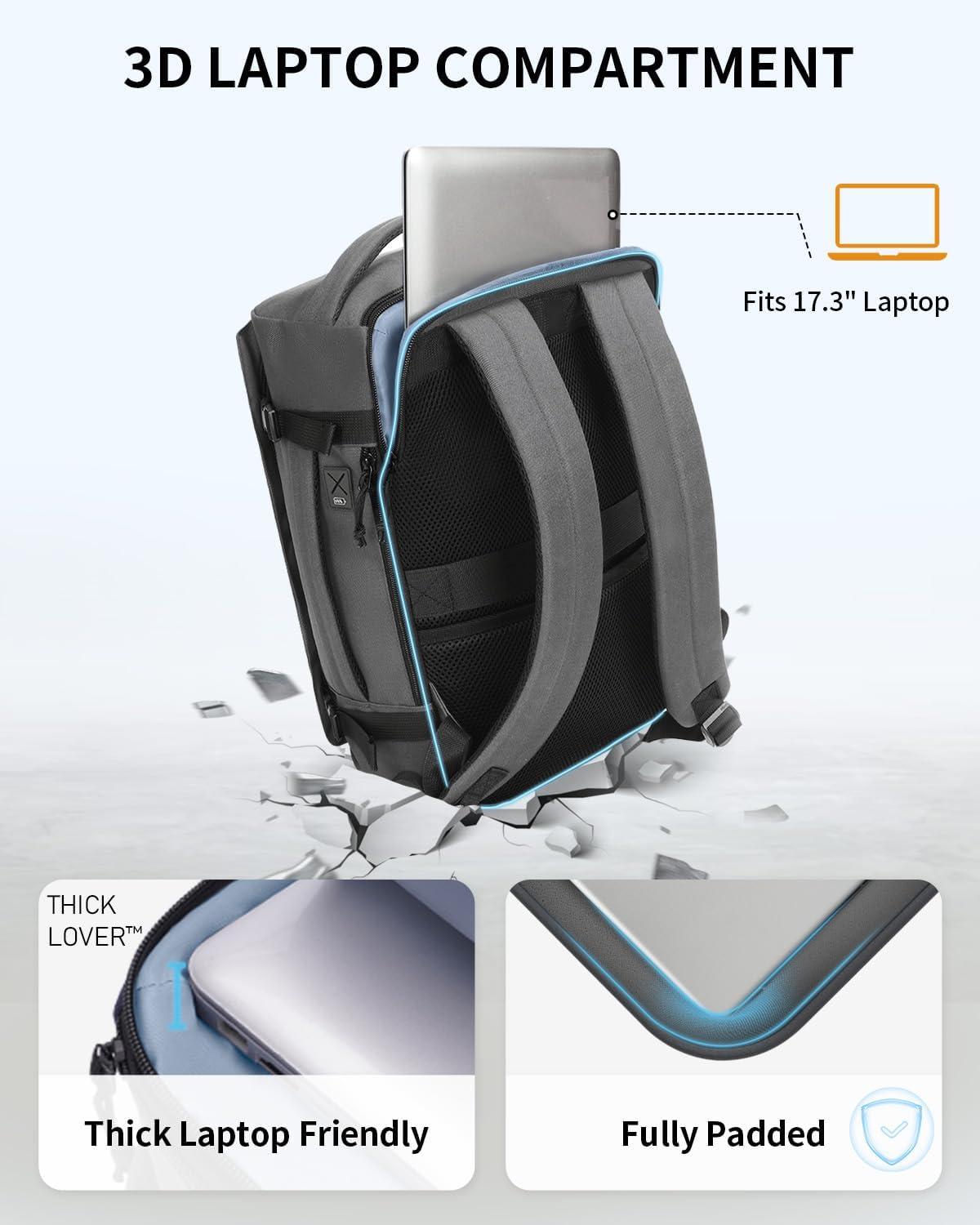 【3D PROTECTIVE LAPTOP HAVEN】Tired of digging through your bag for your laptop? Our back-panel quick-access compartment fits 17.3″ laptops (even thick ones!)—no need to open the main bag. Triple-layer foam padding cushions against impacts, while a dedicated tablet sleeve keeps devices secure. Ergonomic back padding distributes weight to reduce shoulder strain. Quick access, serious protection, zero hassle. This is where convenience meets peace of mind
