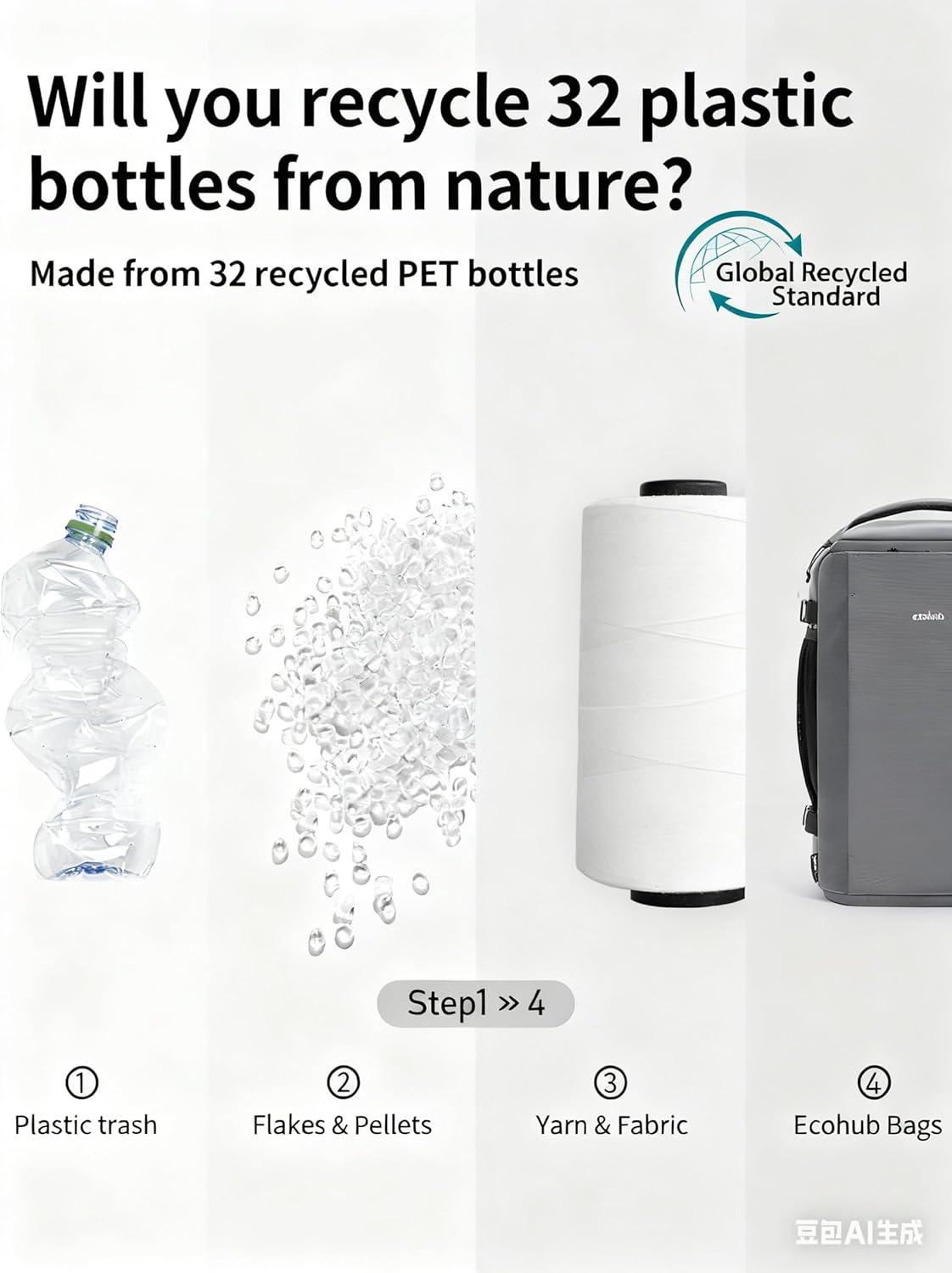 【SUSTAINABLE TRAVEL, SOLID PERFORMANCE】 ECOHUB transforms 34 recycled plastic bottles into a rugged, water-resistant backpack—ideal for travel, daily commutes, business trips, and weekend getaways. Its airline-friendly design fits under seats and carry-on compartments, while heavy-duty SBS zippers and reinforced stitching withstand 2,000+ uses. We're all about zero plastic waste + 24/7 support—because great travel should protect both your gear and the planet (Patent Pending)