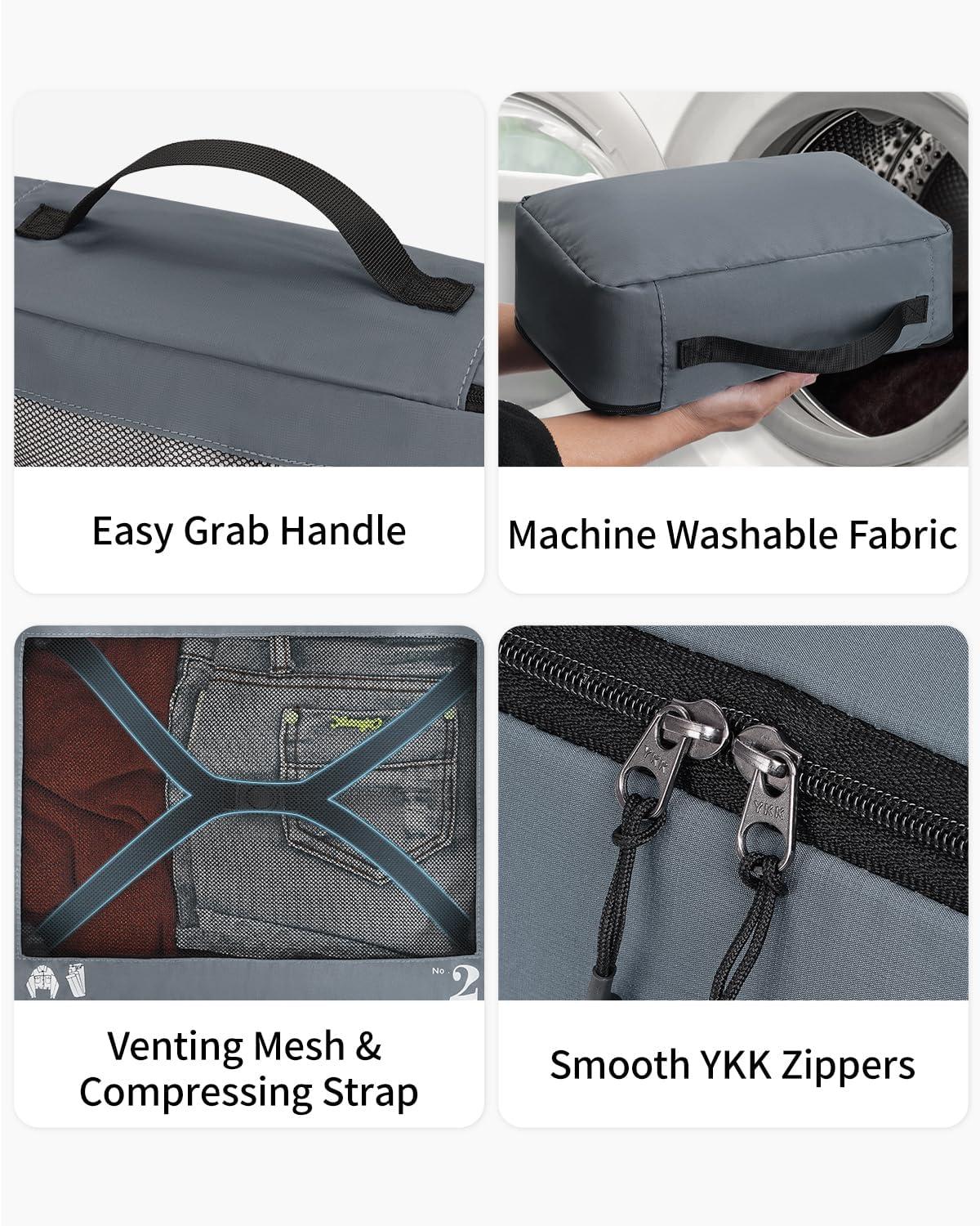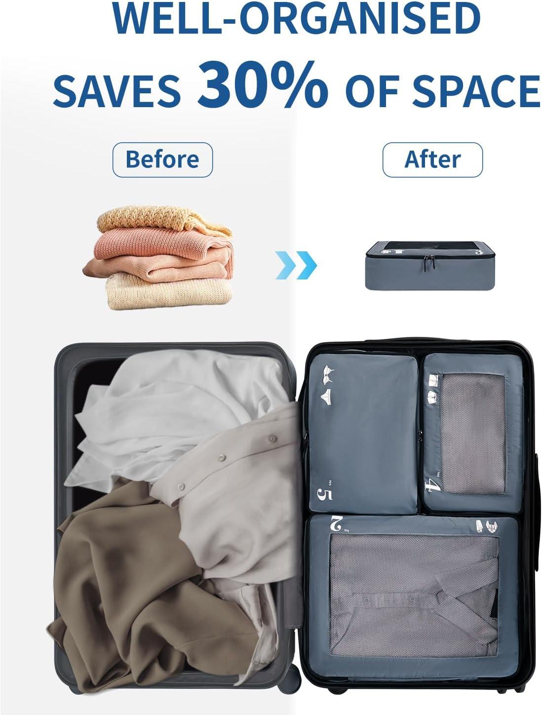 ECOHUB 5 Set Compression Packing Cubes for Suitcases Organiser Bags Set Travel Essentials with Shoe Bags for Travel Tear-resistant Travel Accessories with ID Tag Expandable Packing Bags(Navy Blue)(Grey-No Compress)
