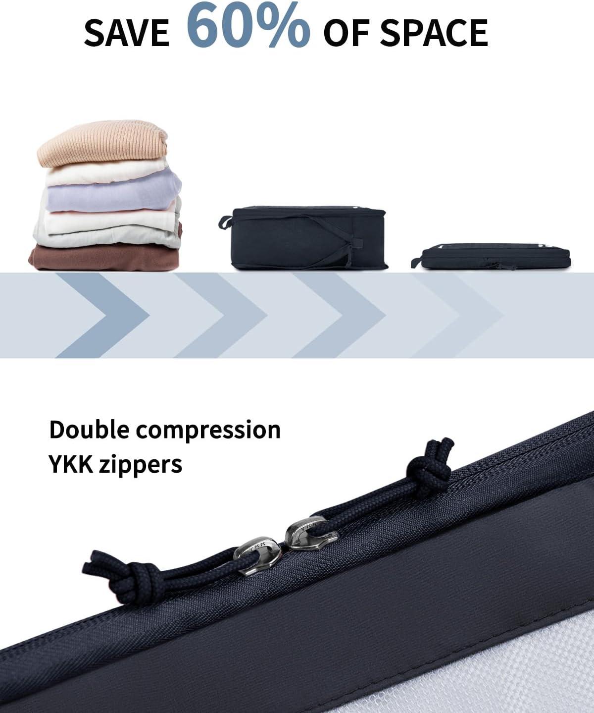 ECOHUB 5 Set Compression Packing Cubes for Suitcases Organiser Bags Set Travel Essentials with Shoe Bags for Travel Tear-resistant Travel Accessories with ID Tag Expandable Packing Bags(Navy Blue)(Navy Blue-Compress)