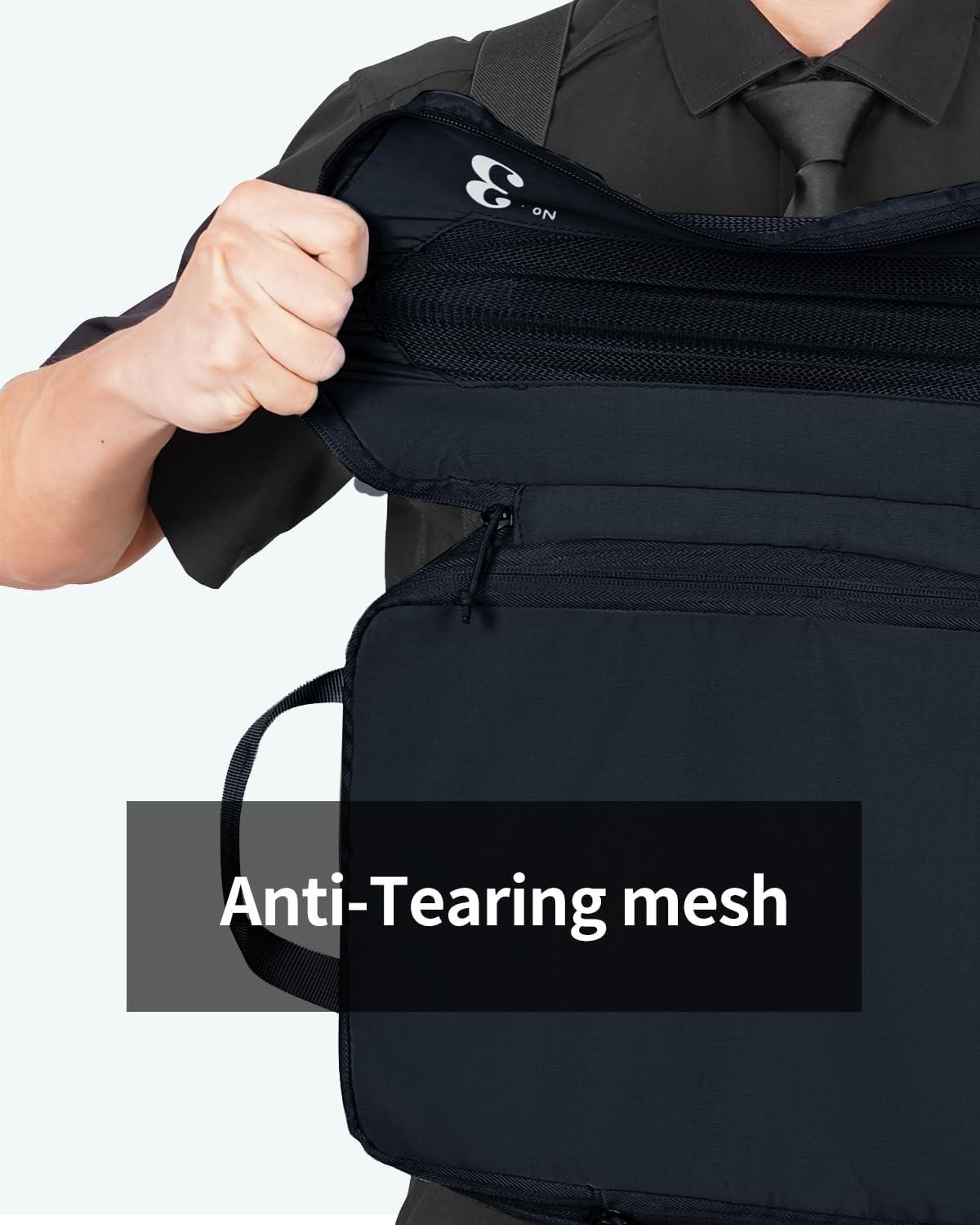 【Compression Design Save More Space】: ECOHUB compressible packing cubes come with an extra zippered section for content compression. Comprssion zippers allow 10cm expansion. Unzip the compressed part, then have room to expand and add more items later. Compression design saves you space inside your luggage by pressing the air out of mesh and zipping up. Adjust and maximize your packing space while keeping your items easily accessed.(PATENT PENDING)