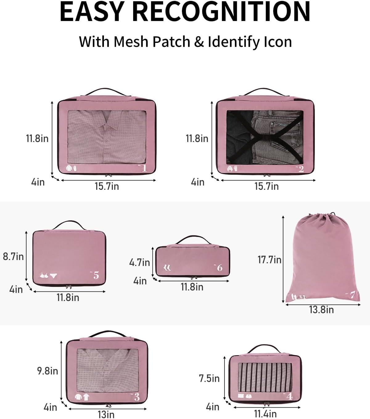 imageECOHUB 5 Set Compression Packing Cubes for Suitcases Organiser Bags Set Travel Essentials with Shoe Bags for Travel Tearresistant Travel Accessories with ID Tag Expandable Packing BagsNavy BluePinkCompress