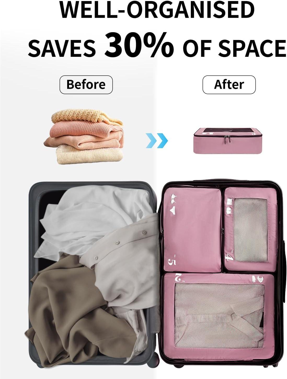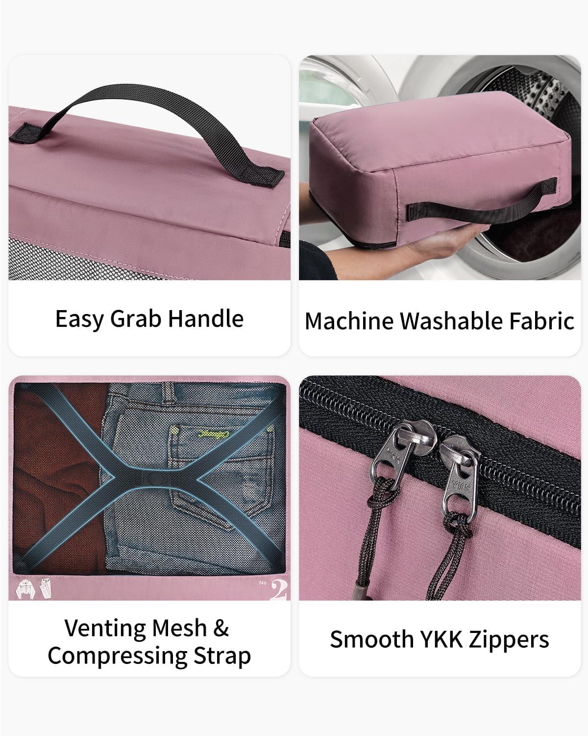 ECOHUB 5 Set Compression Packing Cubes for Suitcases Organiser Bags Set Travel Essentials with Shoe Bags for Travel Tear-resistant Travel Accessories with ID Tag Expandable Packing Bags(Navy Blue)(Pink-Compress)