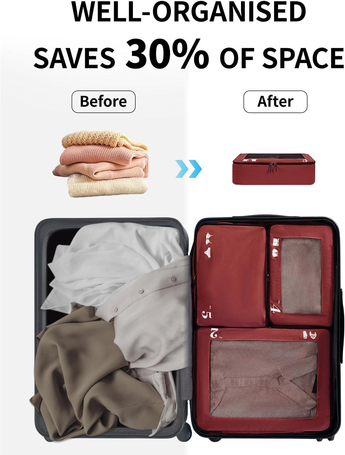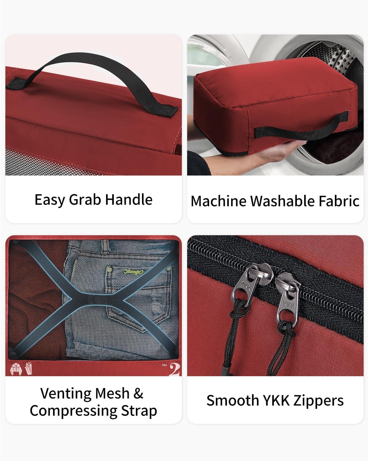 imageECOHUB 5 Set Compression Packing Cubes for Suitcases Organiser Bags Set Travel Essentials with Shoe Bags for Travel Tearresistant Travel Accessories with ID Tag Expandable Packing BagsNavy BlueRedNo Compress