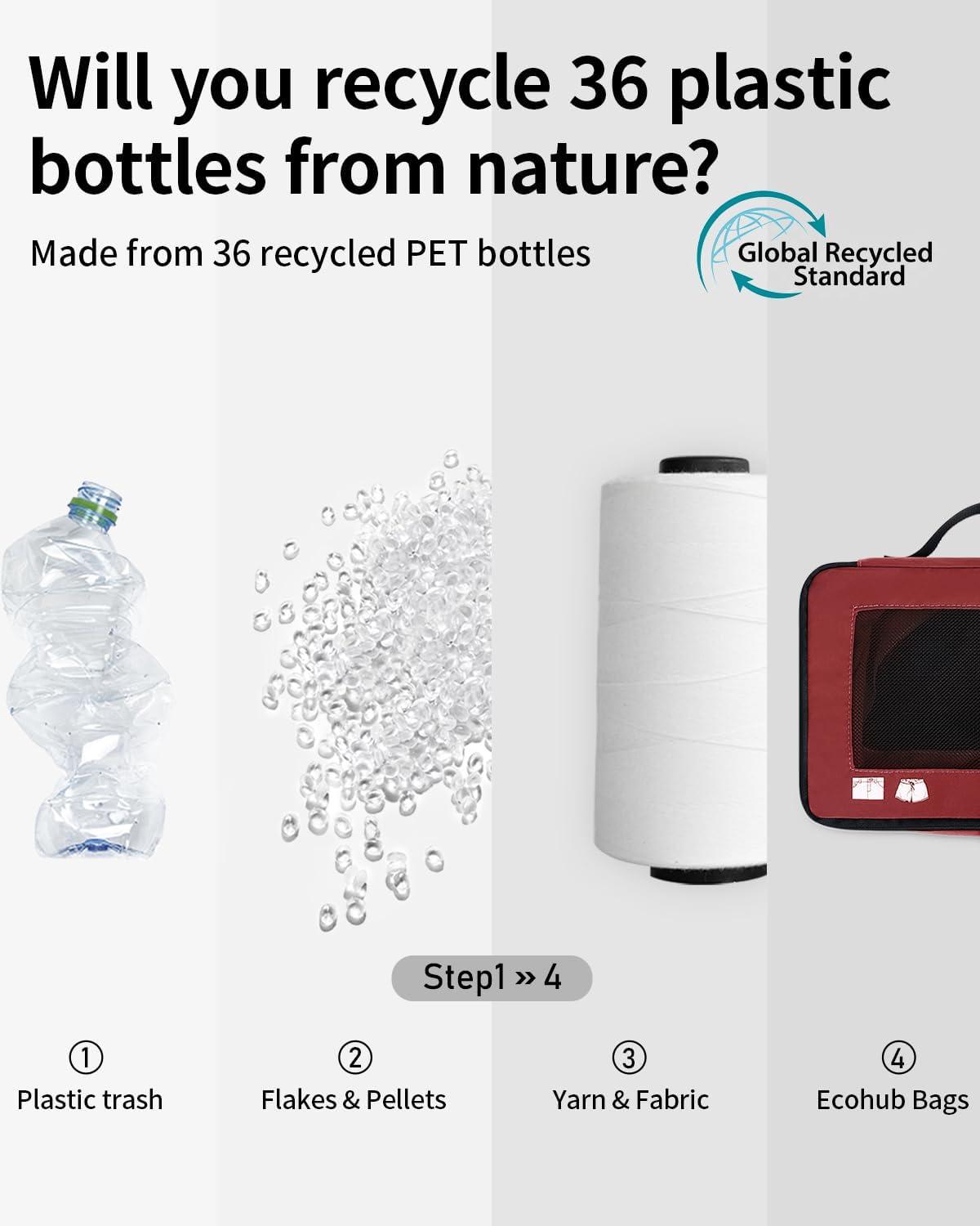 【SUSTAINABLE AND GUARANTEE】: ECOHUB travel packing cubes are made from at least 50% recycled materials, with fabric and lining crafted from 26 recycled PET plastic bottles. The lightweight fabric combined with YKK zippers and reinforced ripstop stitching, ensure durability for any adventure. If you have any concerns, reach out through your order. (Patent Pending)