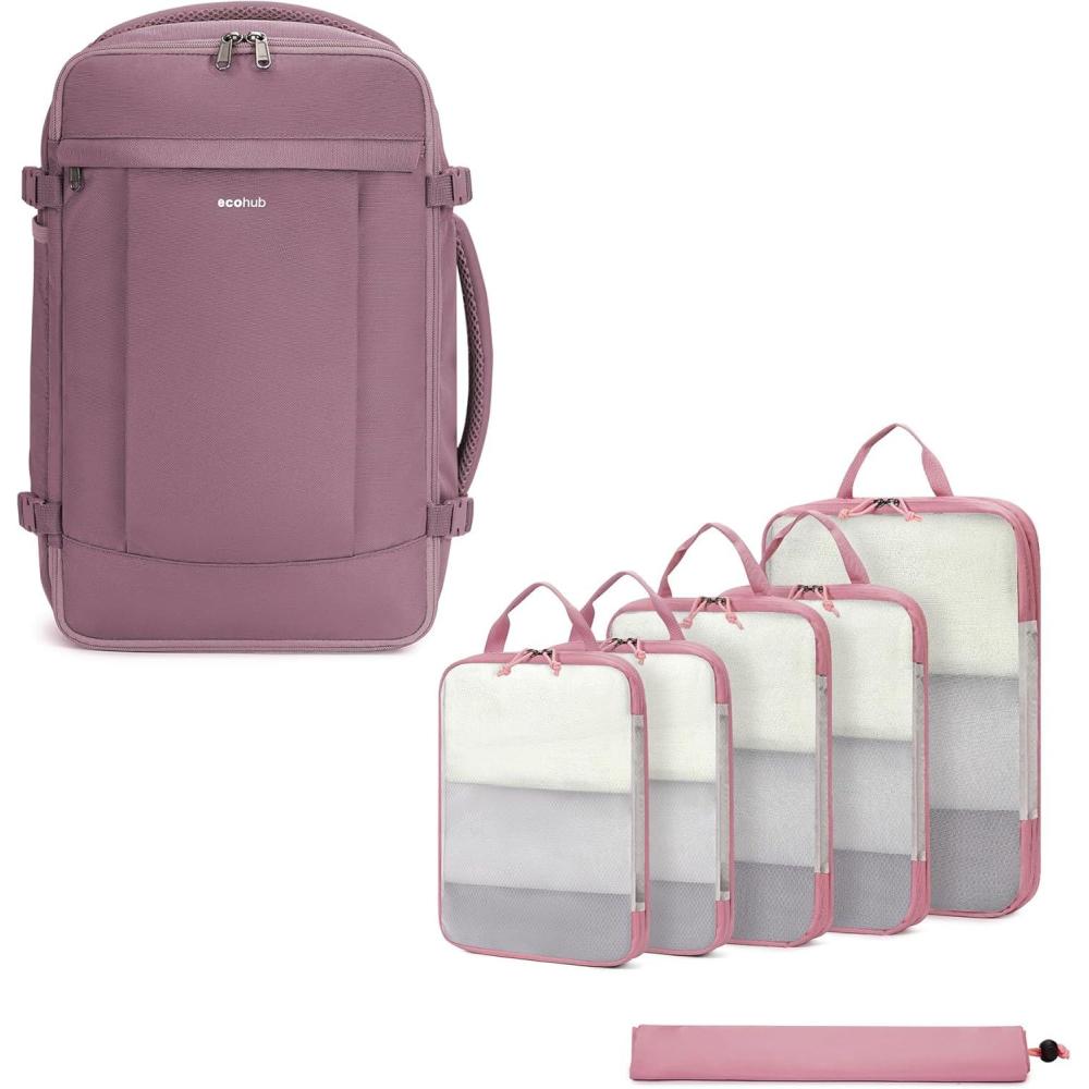 ECOHUB 6 Set Compression Packing Cubes for Travel, Suitcases Organizer Bags with YKK Zipper, Compressible Packing Cubes for Carry On & Luggage, Ultra Tear Resistant, Lightweight, Pink ECOHUB Travel Backpack for Women, Carry on Backpack with USB Charging Hole, Spirit Airlines Personal Item Bag Flight Approved, 15.6 Inch Laptop Backpack with Anti Theft Pockets, 30L, Pink