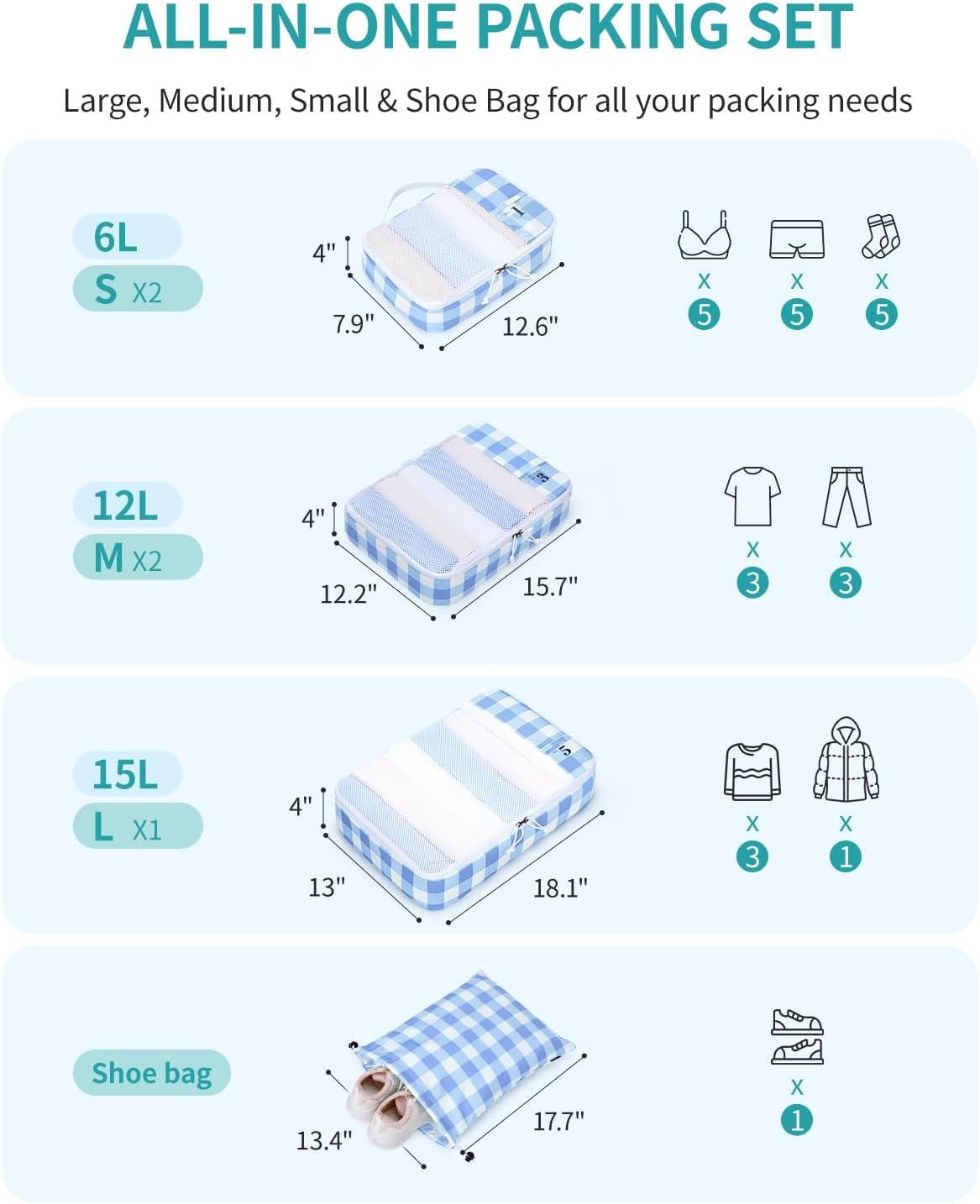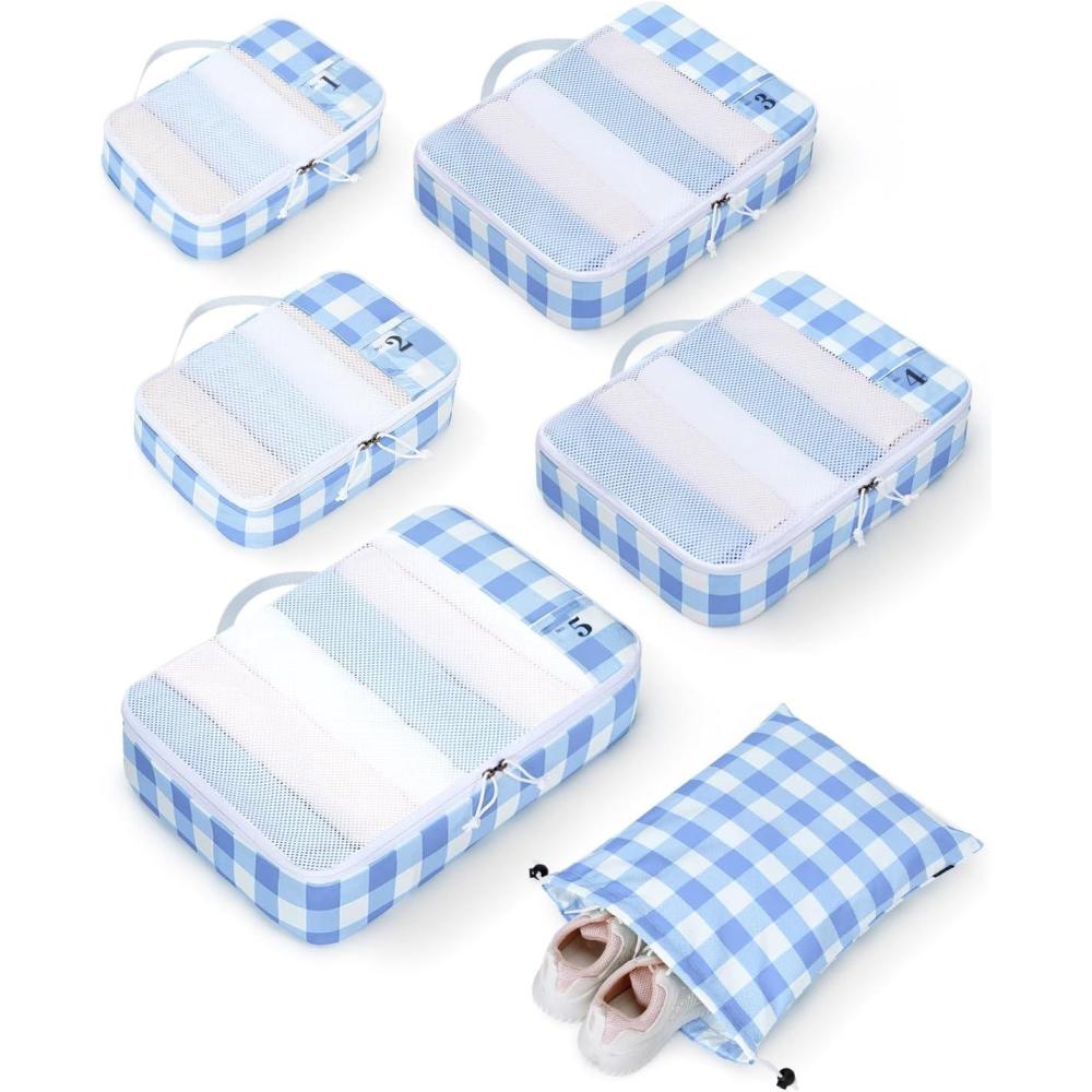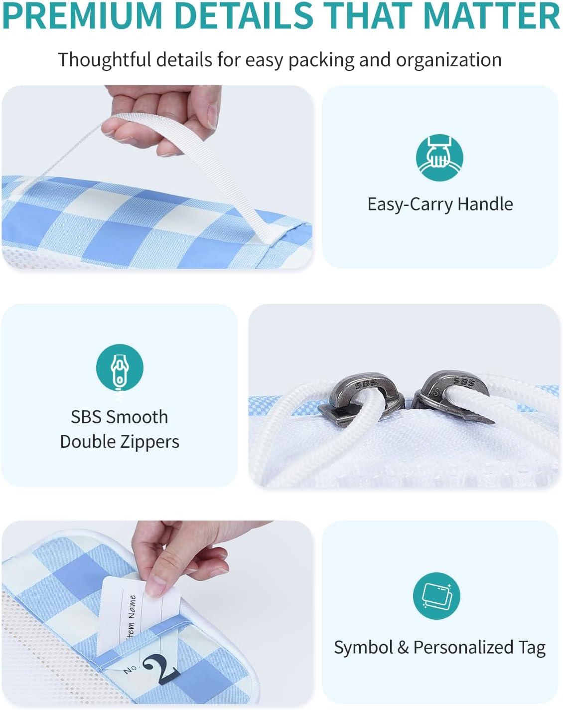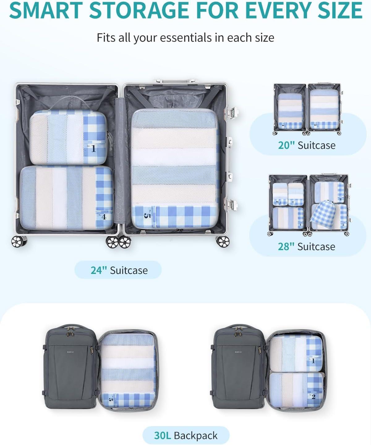 imageECOHUB 6 Set Packing Cubes for Travel Suitcase Organizer Bags for Luggage Lightweight Carry On Suitcase with Lable amp Personalized TagLight Blue