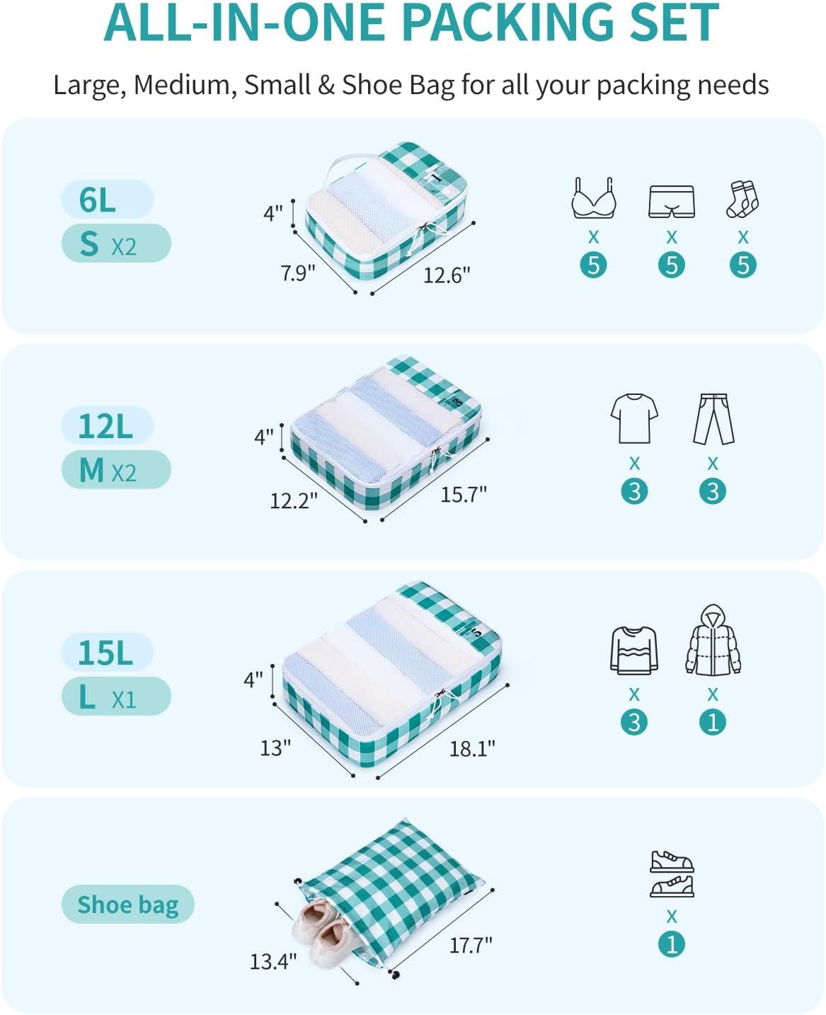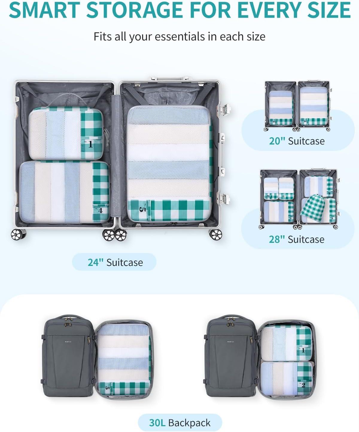 【Stay Organized on Every Trip】 ECOHUB travel packing organizers include 1 large, 2 medium, 2 small cubes and 1 shoe bag to keep your suitcase neat and clutter-free. Perfect luggage organizer set for business trips, family vacations, and frequent travelers