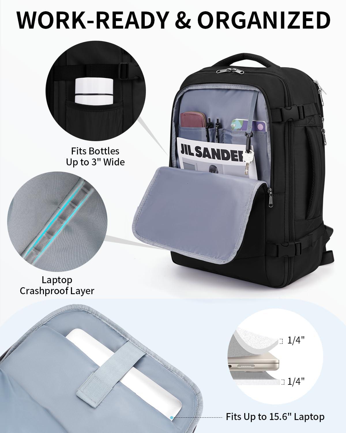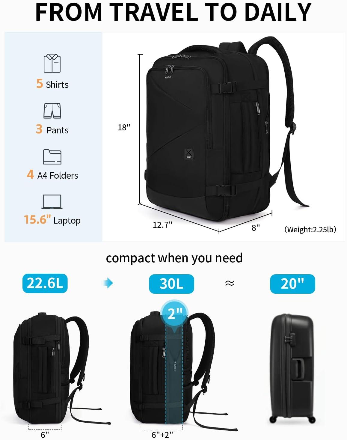 imageECOHUB Carry On Travel Backpack Expandable Airlines Personal Item Bag 18x14x8 Water Resistant 17 inch Laptop Backpack Flight Approved 12 Pockets 30L Work Backpacks with Wet Pocket ampamp Cable SlotBlack