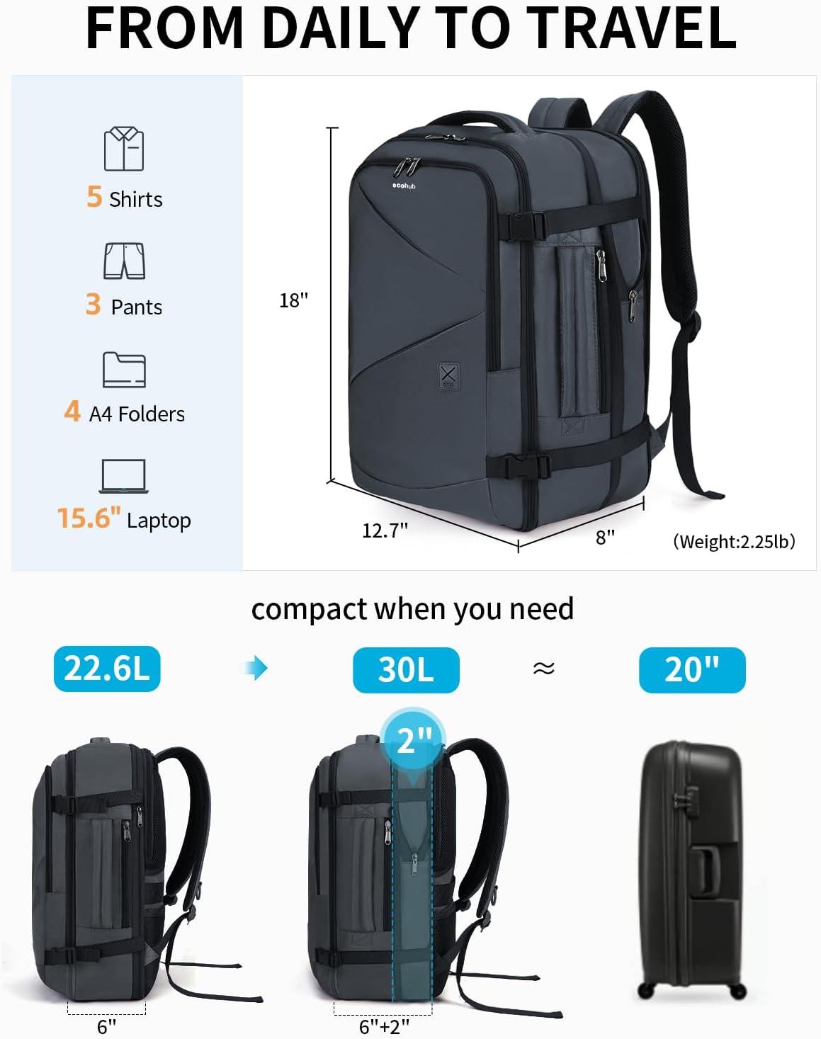 Be the first to review “ECOHUB Carry On Travel Backpack, Expandable Airlines Personal Item Bag 18x14x8, Water Resistant 17 inch Laptop Backpack Flight Approved, 12 Pockets 30L Work Backpacks with Wet Pocket & Cable Slot(Grey)”