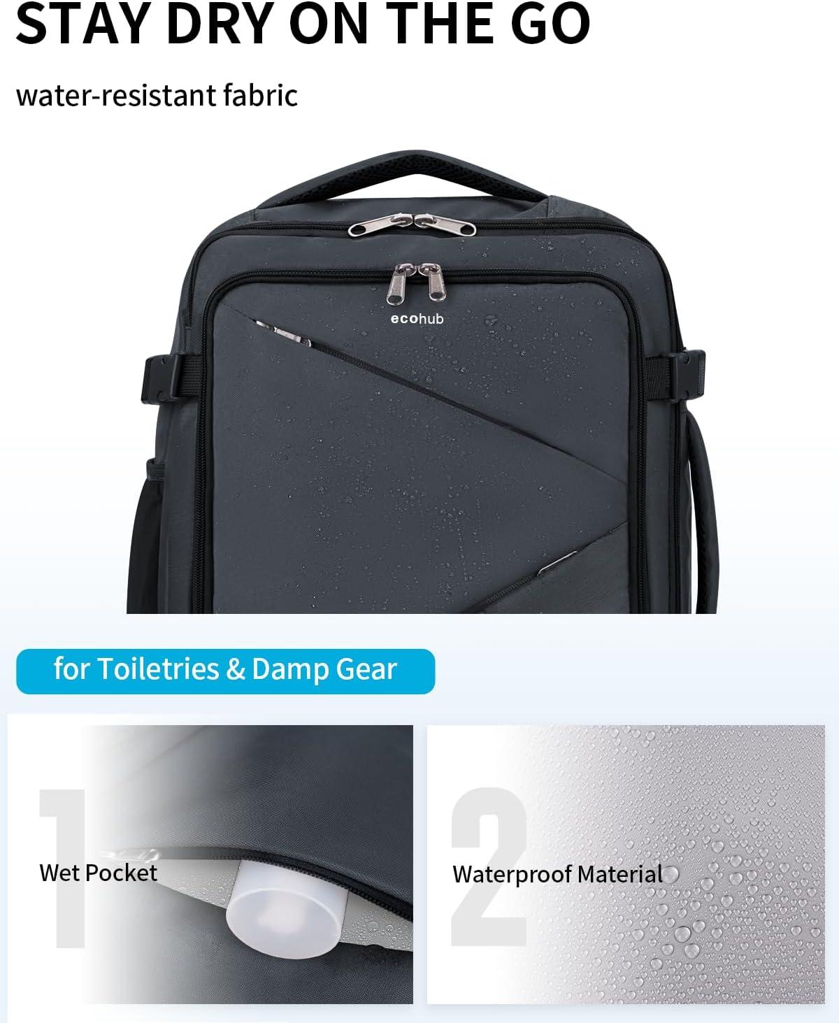 imageECOHUB Carry On Travel Backpack Expandable Airlines Personal Item Bag 18x14x8 Water Resistant 17 inch Laptop Backpack Flight Approved 12 Pockets 30L Work Backpacks with Wet Pocket ampamp Cable SlotGrey