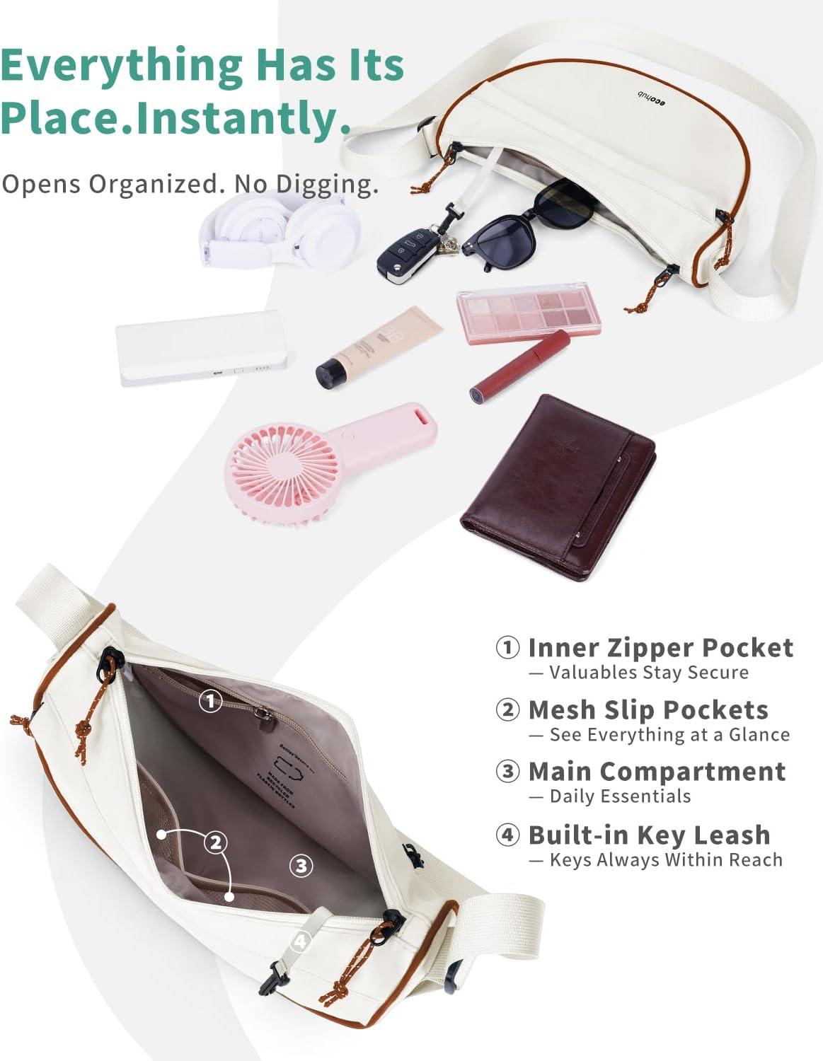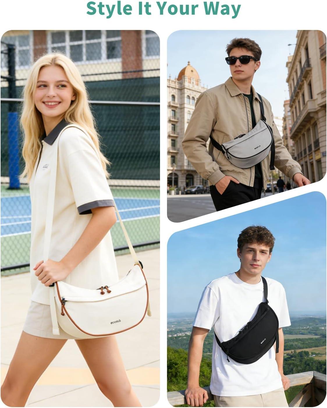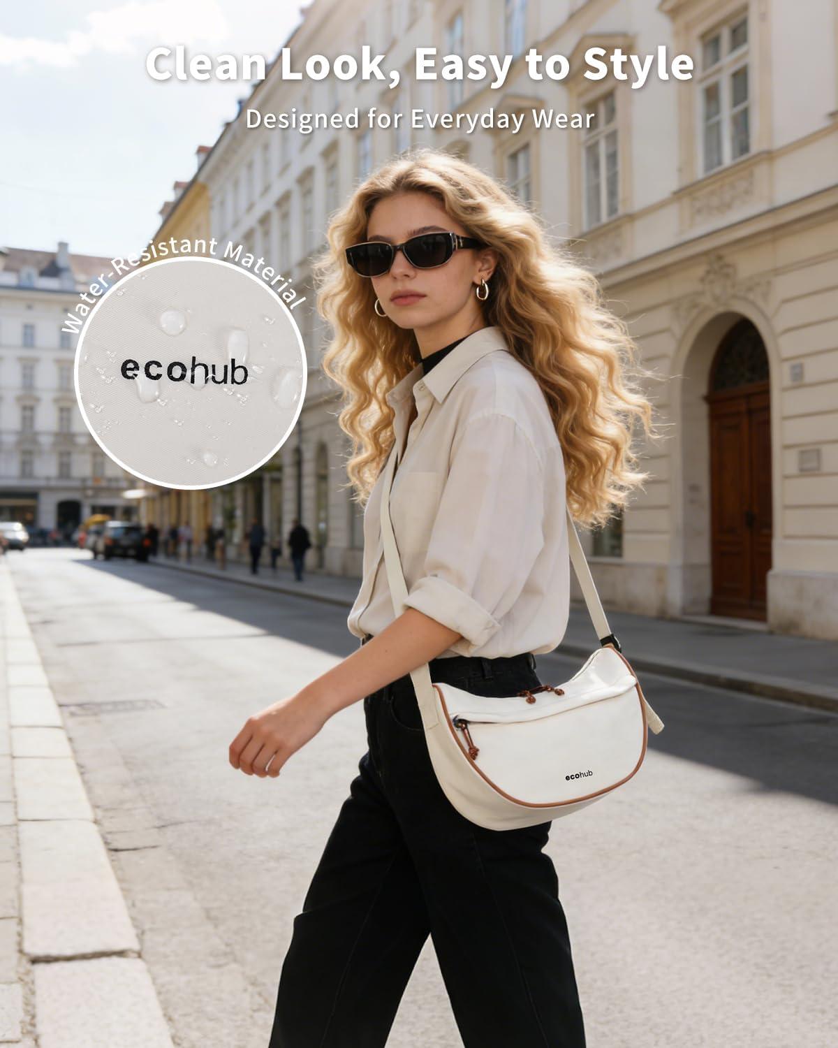 ECOHUB Crossbody Bags for Women Men Crossbody Purse with Adjustable Strap Structured Crescent Shoulder Bag(Beige)