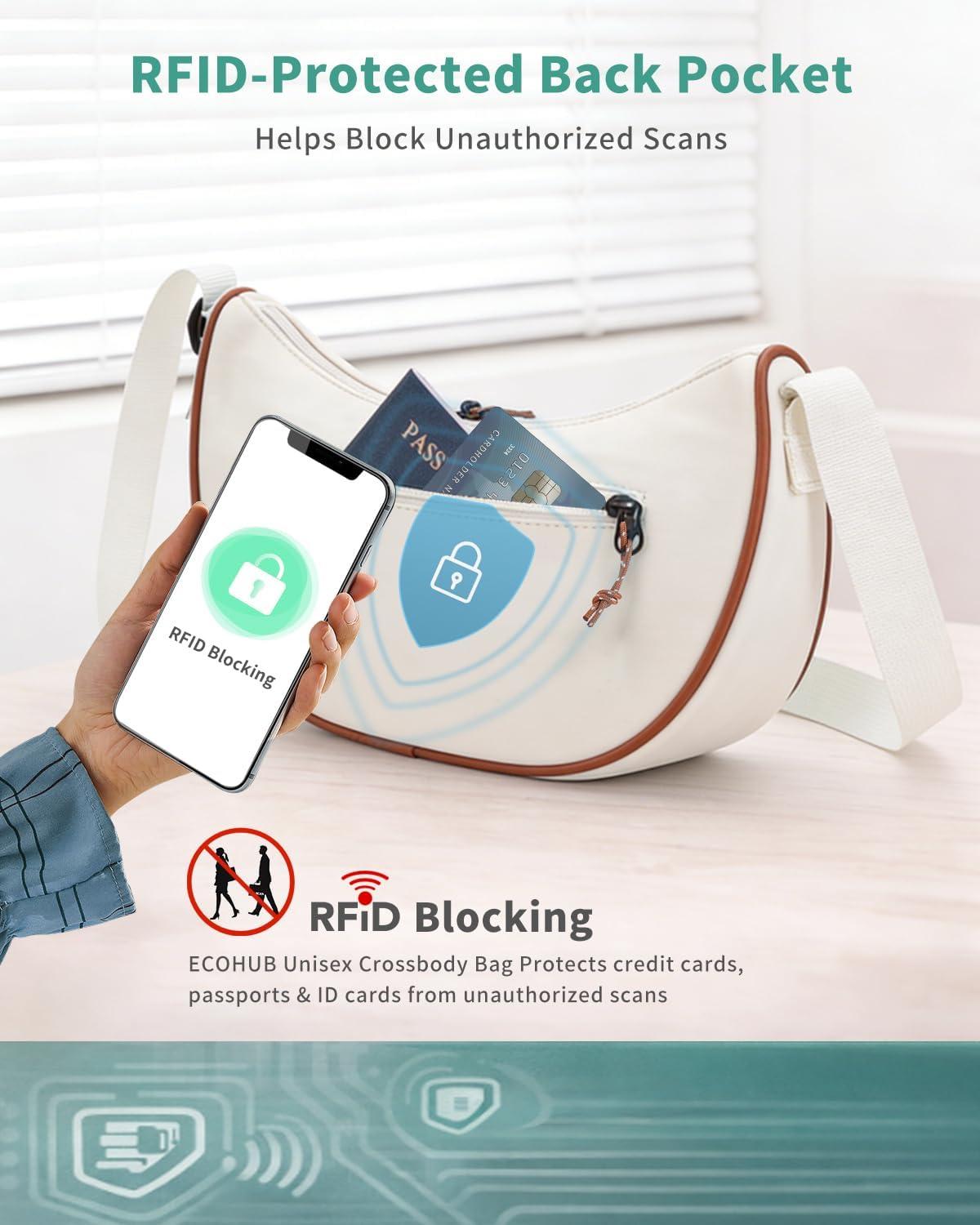ECOHUB Crossbody Bags for Women Men Crossbody Purse with Adjustable Strap Structured Crescent Shoulder Bag(Black)