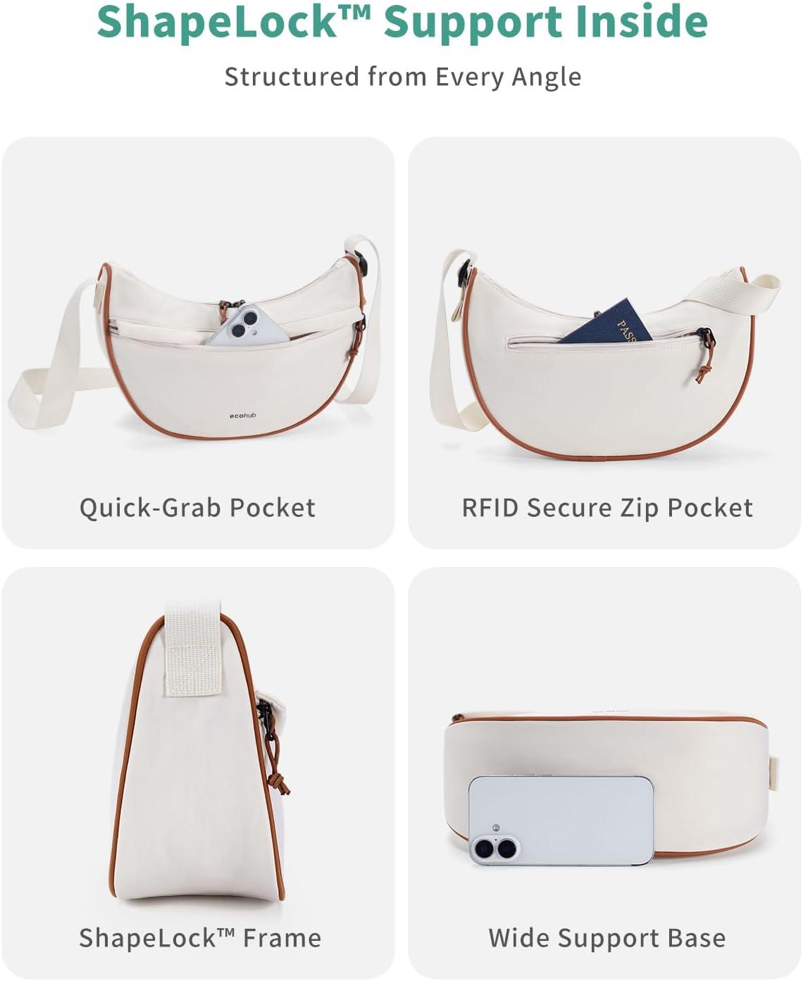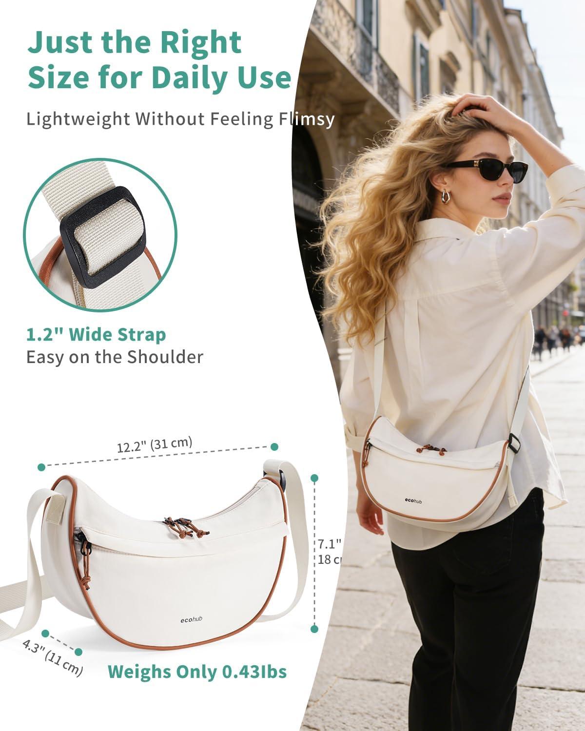 imageECOHUB Crossbody Bags for Women Men Crossbody Purse with Adjustable Strap Structured Crescent Shoulder BagBeige