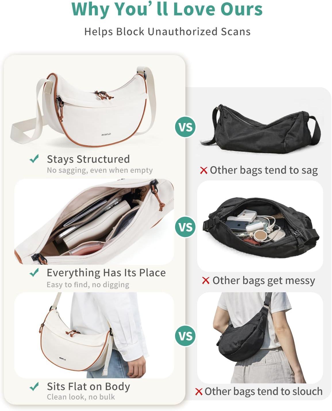 imageECOHUB Crossbody Bags for Women Men Crossbody Purse with Adjustable Strap Structured Crescent Shoulder BagBlack