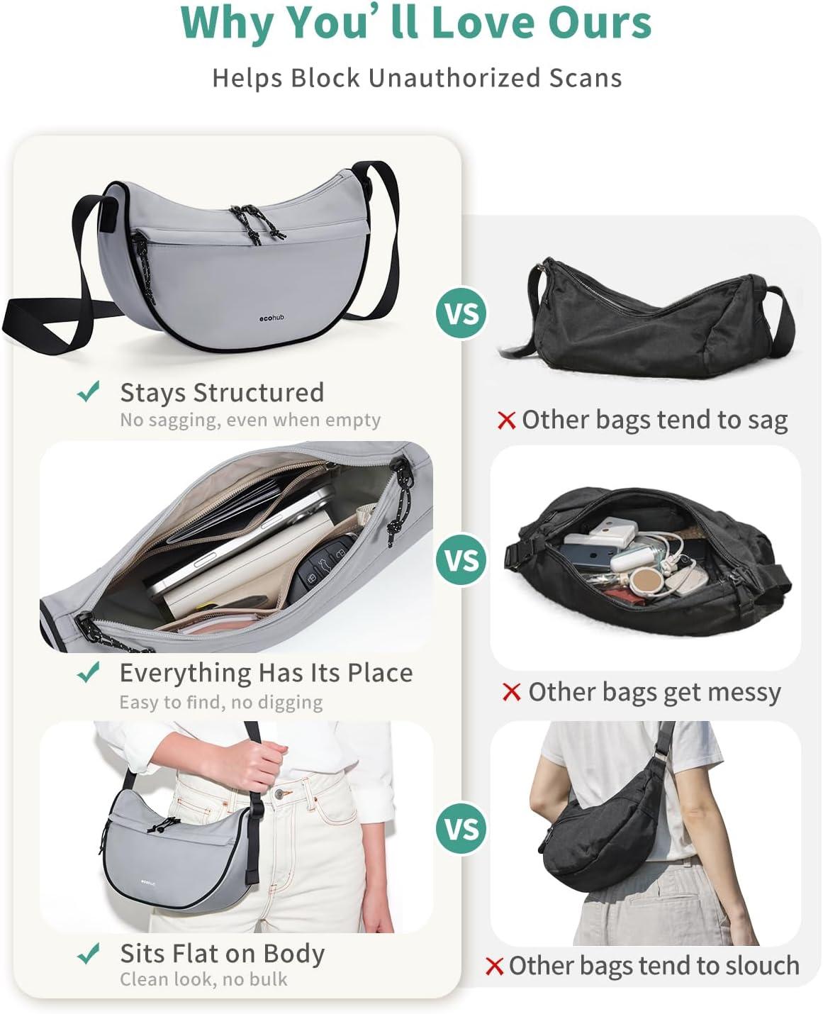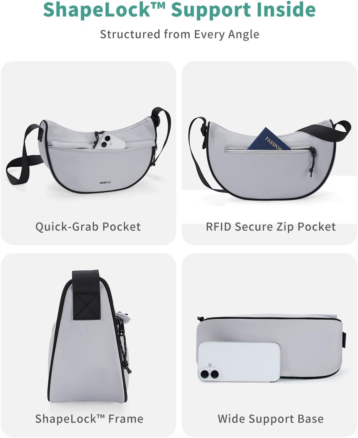 imageECOHUB Crossbody Bags for Women Men Crossbody Purse with Adjustable Strap Structured Crescent Shoulder BagGrey