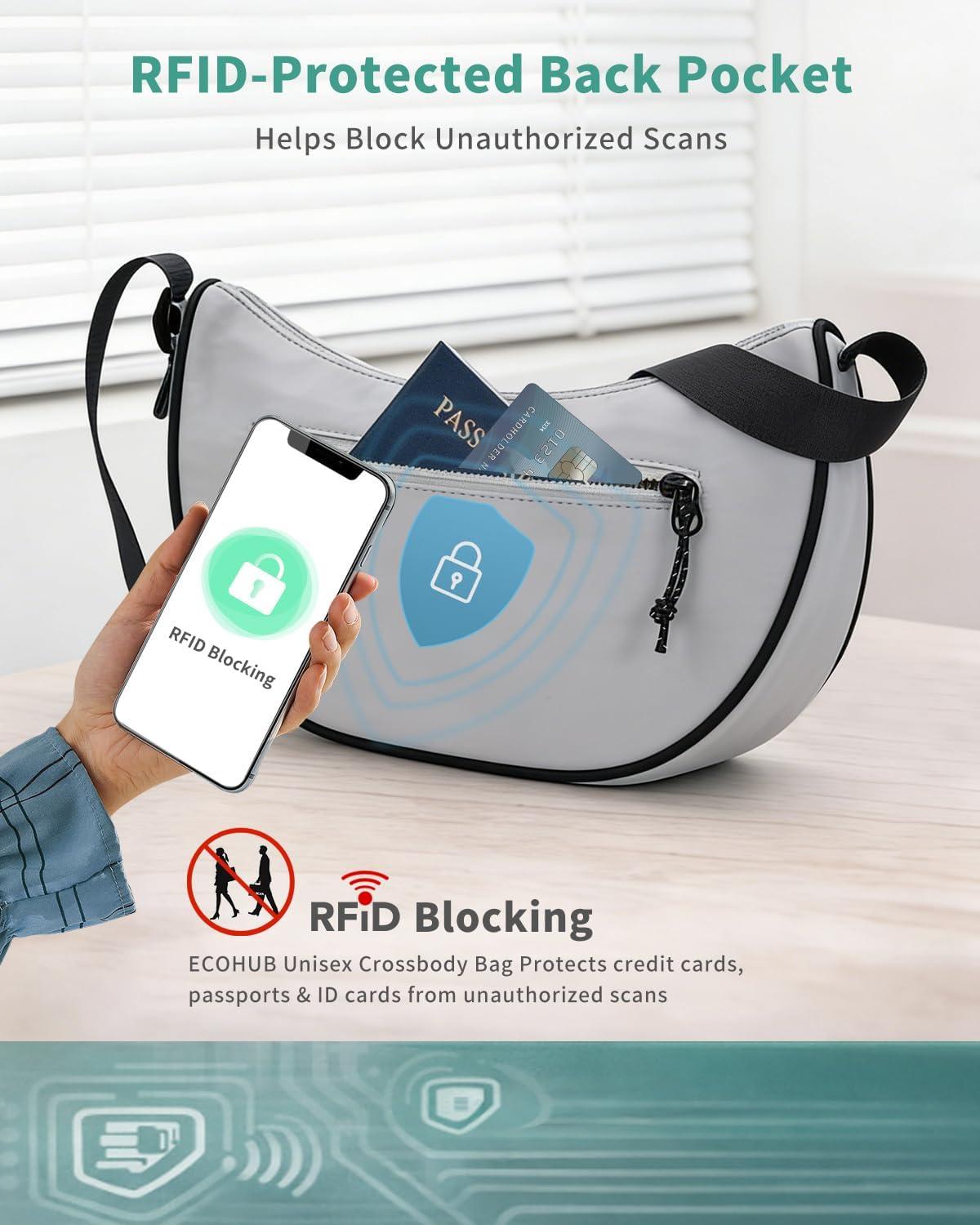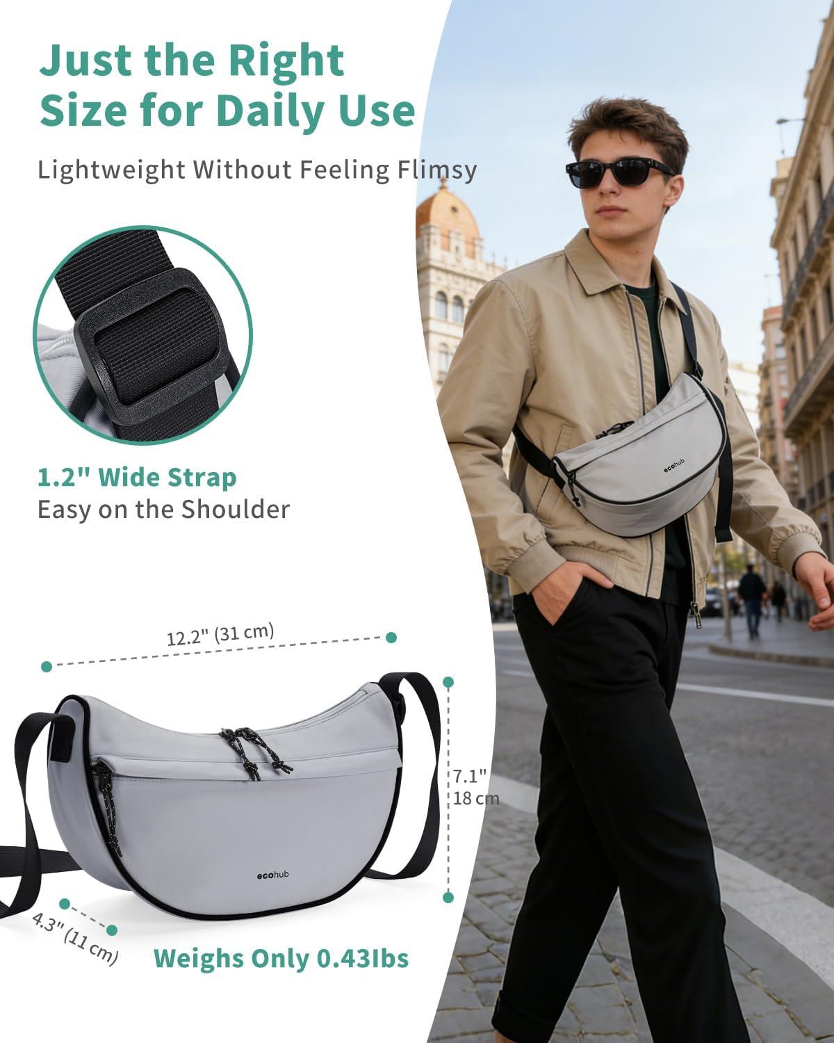 ECOHUB Crossbody Bags for Women Men Crossbody Purse with Adjustable Strap Structured Crescent Shoulder Bag(Grey)