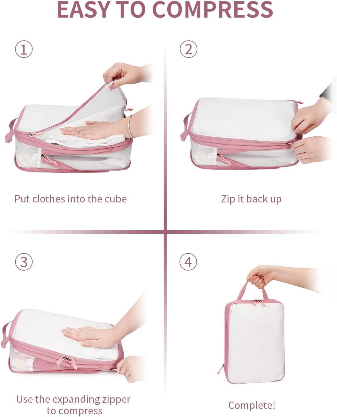 【KEEP ORGANIZED & PORTABLE】The set of travel packing organizers contains 1 large cube, 2 medium cubes, 2 small cubes for classifying coats, sweaters, shirts, jeans, underwear, socks, etc., and 1 drawstring bag for separating clean and used cloth. Maximize your luggage space without adding extra weight. Top grab handle allows easy carrying or pulling out of your pack.