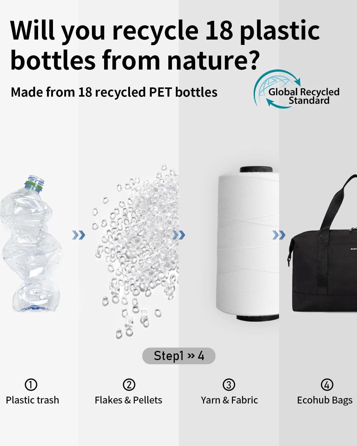 【SUSTAINABLE AND GUARANTEE】: ECOHUB personal item bags are made from at least 50% recycled materials, with fabric and lining crafted from 18 recycled PET plastic bottles. The water-resistant, lightweight fabric, combined with heavy-duty SBS zippers and reinforced ripstop stitching, ensure durability for any adventure. If you have any concerns, reach out through your order. (Patent Pending)