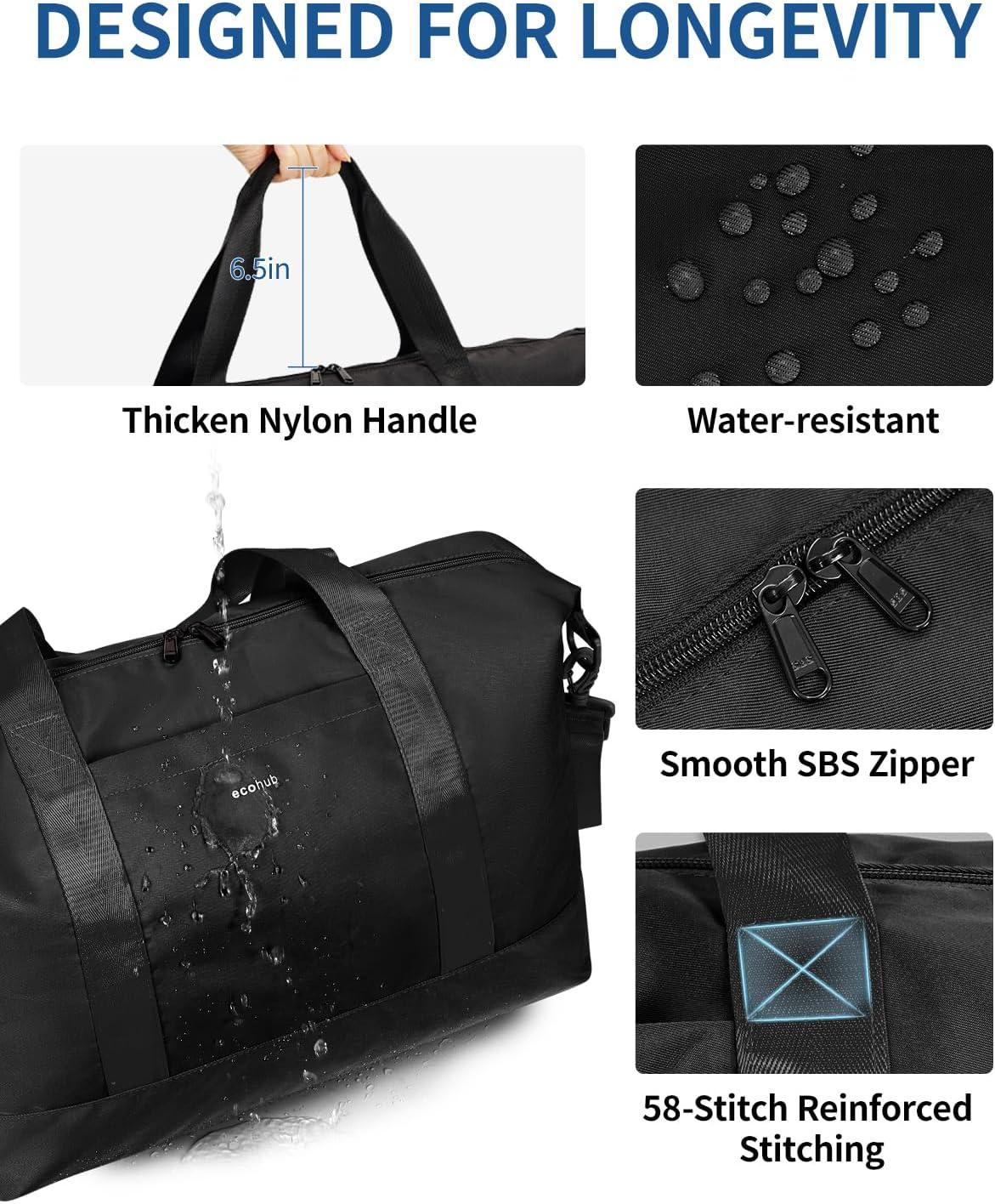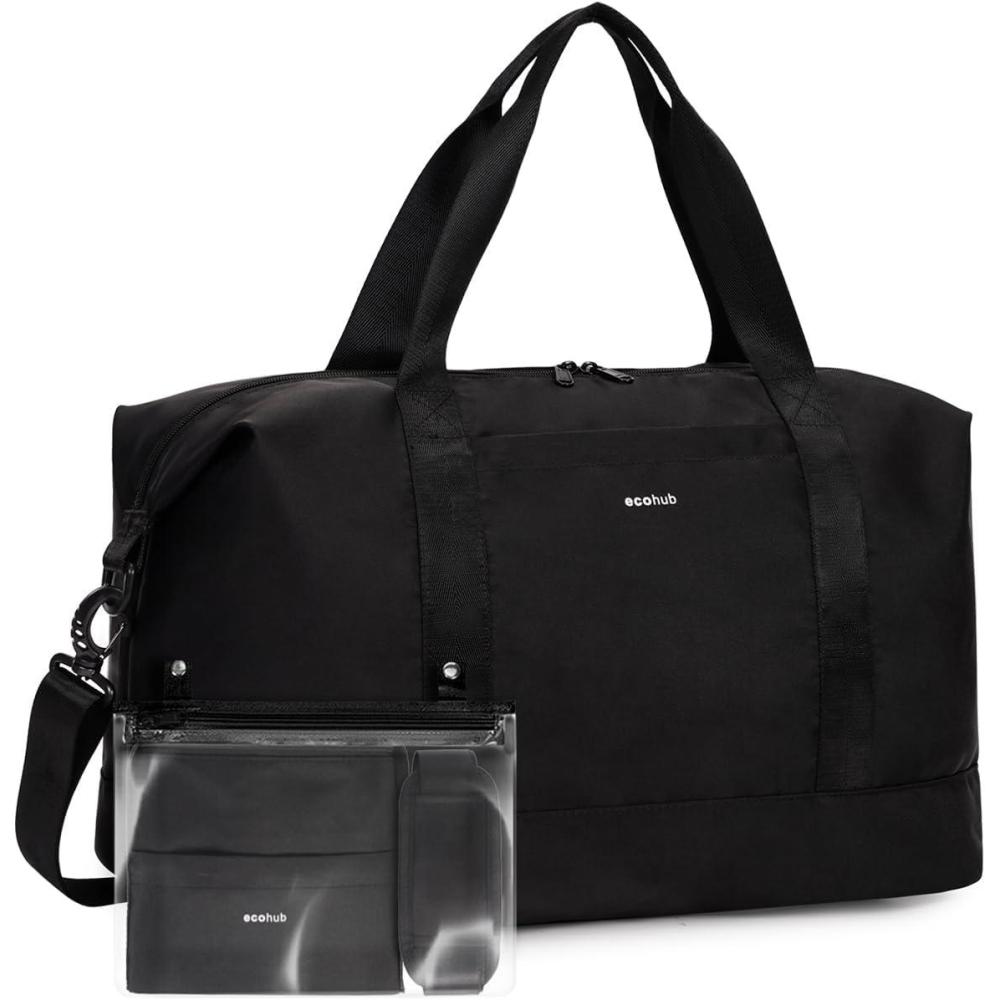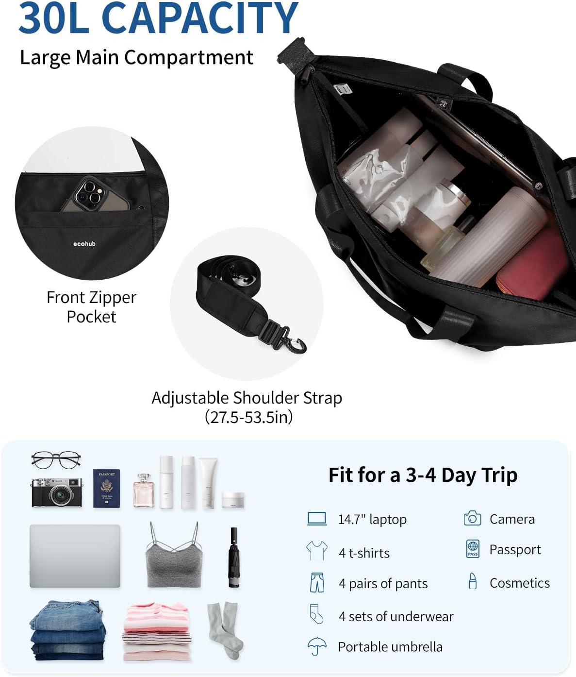 【SPACIOUS & 2 IN 1 WET BAG】: ECOHUB weekender bag offers a 30L main compartment and an exterior zipper pocket for quick access. The duffel can be fold into a wet bag when not in use. It includes a detachable, leak-proof TSA-approved wet bag for toiletries.